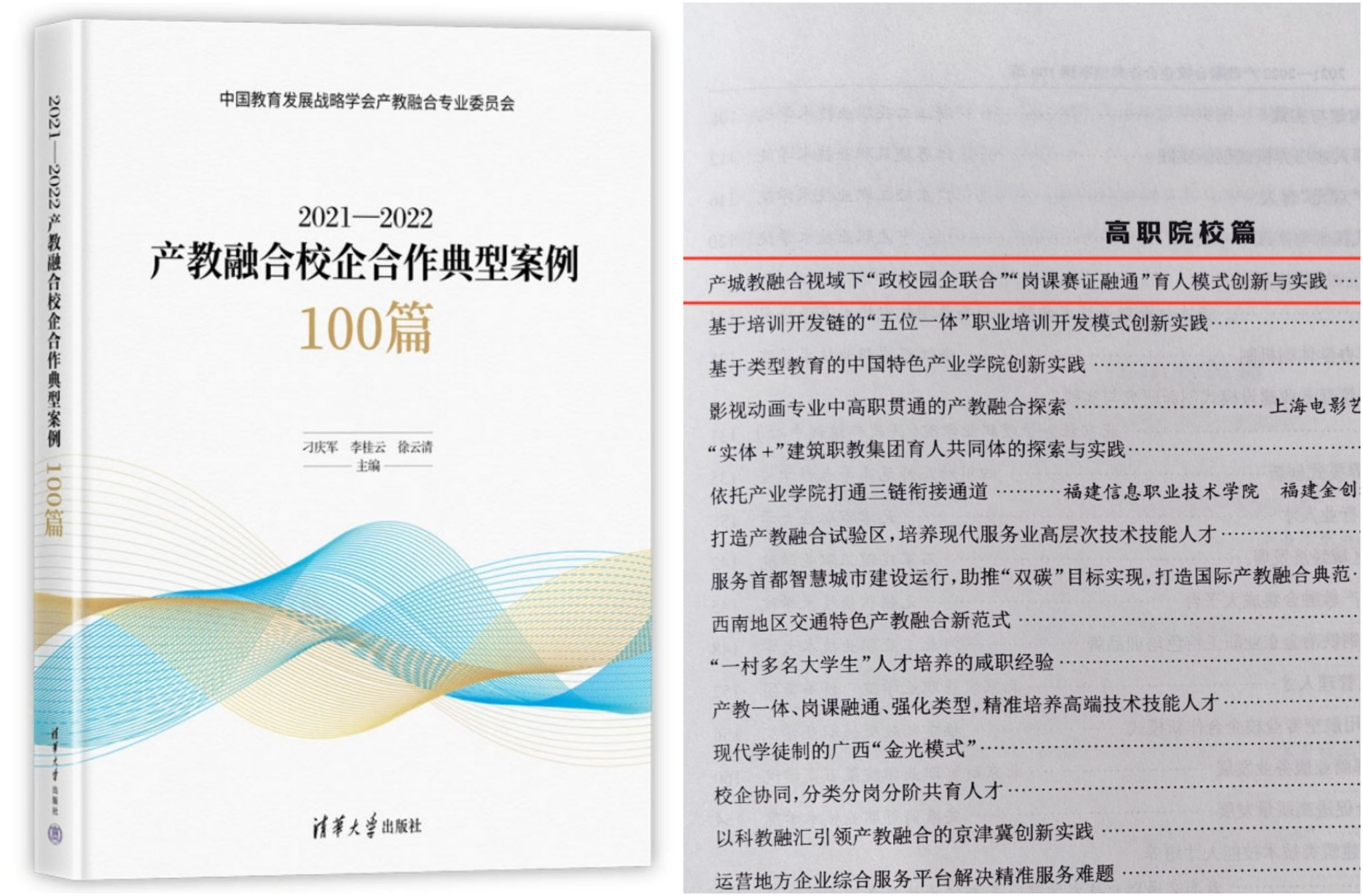 2021年,教育部发布《关于征集产教融合校企合作案例的启事》,征集深化产教融合、校企合作的典型案例。中国教育发展战略学会产教融合专业委员会受教育部职业教育与成人教育司委托,组织案例申报及遴选,最终遴选出485个典型案例。在此基础上,专委会精选出100篇典型案例,出版《2021—2022产教融合校企合作典型案例100篇》一书。