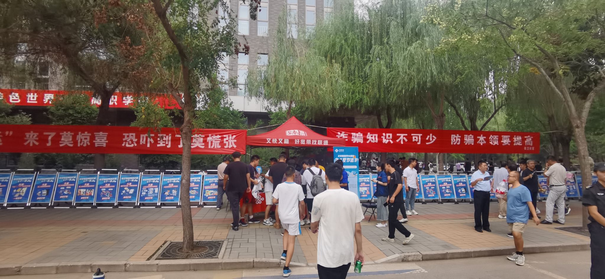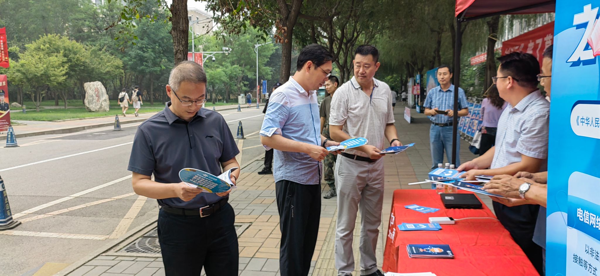 为进一步加大防范电信诈骗宣传教育力度,提高师生防诈、反诈意识,保护师生财产安全,9月5日,学校保卫处牵头,联合人事处、学工部、武装部、后勤基建处在学二食堂东侧开展了防范电信诈骗宣传活动。
