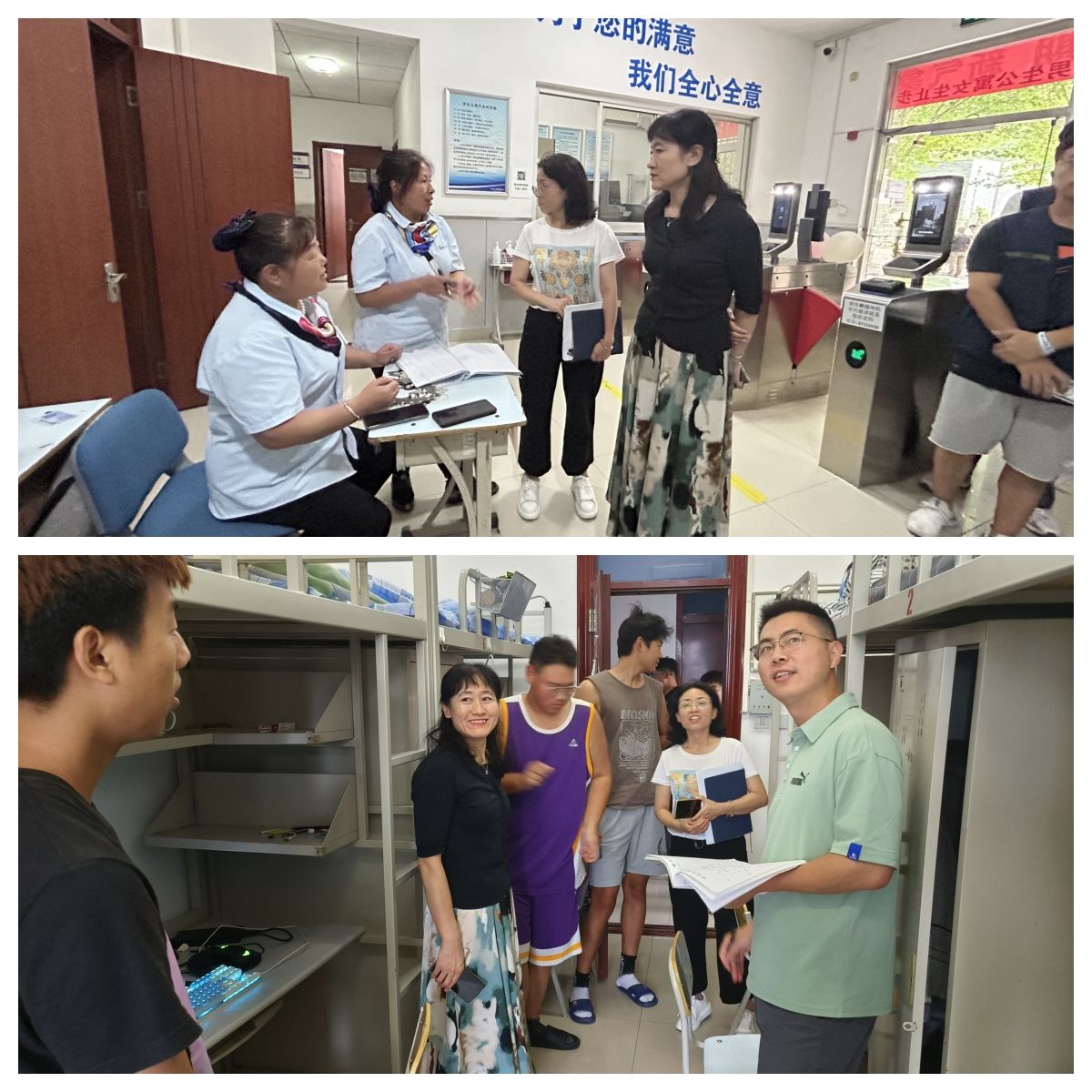 老师们在宿舍与宿舍管理员沟通宿舍设备到位情况,查询学生返校、开学准备等情况。杨金丽详细询问了同学们对宿舍和校园环境的感受。在贯通新生和衔接班新生宿舍,她希望同学们发扬电科院“求实、创新、厚德、重艺”的精神,踔厉奋发、勇毅前行,努力成为堪当民族复兴大任的时代新人。周海君叮嘱同学们要在新环境中保持团结、互相学习、守正创新,同时务必重视卫生及安全问题。海楠楠嘱咐同学们如有困难、有问题务必及时向辅导员们反映,机电工程学院是一个温暖的大家庭,也是同学们大学生活的坚强后盾。