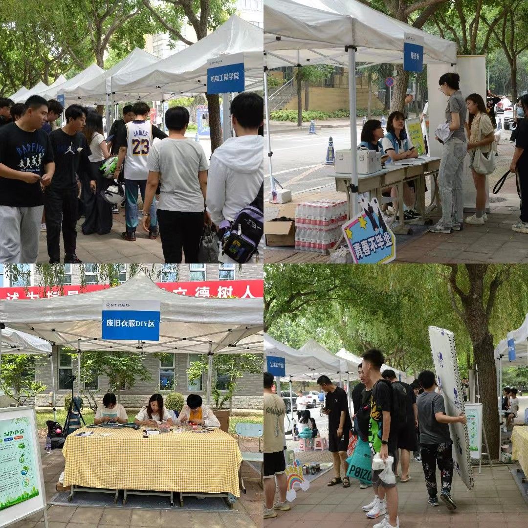 “跳蚤市场”划分为售卖区、服务区、暖心捐赠区、废旧衣物DIY区、节能环保宣传区、即时贴领取处六大板块。售卖区摊主们摆满了各式各样的二手物品,从实用的学习资料、专业辅导用书到日常生活用品、精美的首饰、手工编织等物品,吸引了同学们驻足挑选,完成了数笔交易。服务站为同学们提供摊位引导、物资运送、饮用水供给等服务。暖心捐赠区回收毕业生捐赠的书籍、衣服等物品,并用于学校公益项目。废旧衣物DIY区的同学发挥自己的奇思妙想,在毕业生文化衫上进行涂鸦,并进行现场旧物改造,实现二次利用。节能环保宣讲区弘扬节能环保理念,倡导大家绿色生活。即时贴领取处准备的即时贴发给打包行李的同学,切实为大家办实事。现场的摊主纷纷表示,很多书籍和旧物不方便邮寄回家,把他们留给需要的同学,也是为他人贡献一份绵薄之力。