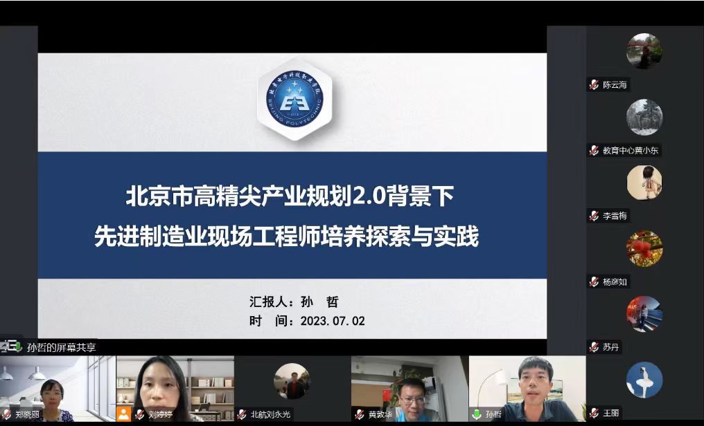 课题负责人孙哲博士从课题研究意义、研究内容、研究方案、研究计划与经费预算、预期成果等五个方面对课题《北京市高精尖产业规划2.0背景下先进制造业现场工程师培养探索与实践》进行开题汇报,校外三位专家对课题进行了具有针对性的提问和讨论,对课题的研究内容和预期成果等方面提出了具体研究意见。