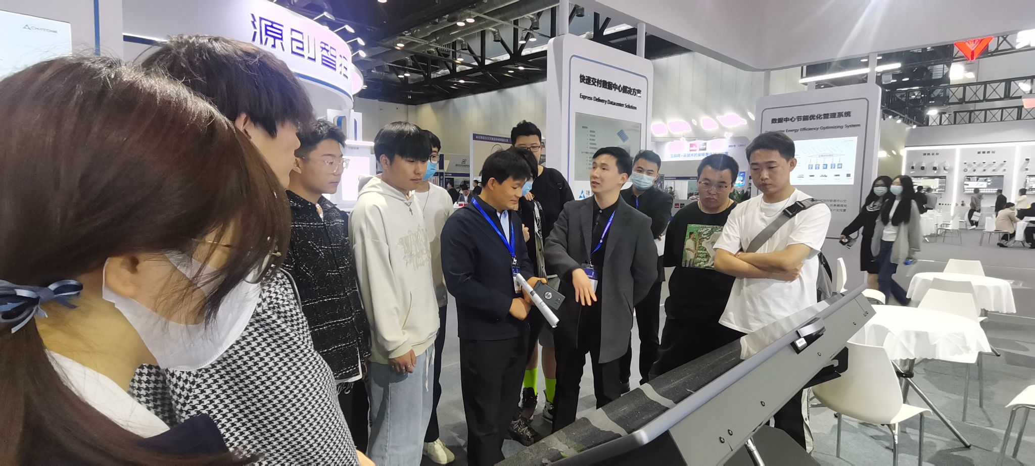 参观展会的过程中,智能建筑技术系主任林梦圆发挥学科优势为学生介绍了S9-10展厅智慧建筑及“新基建”的相关展品,尤其着重介绍了西门子、物联网等相关最新研究成果,带领学生们深入了解科技发展前沿以及“产、学、研、用”创新成果转化对接成效。