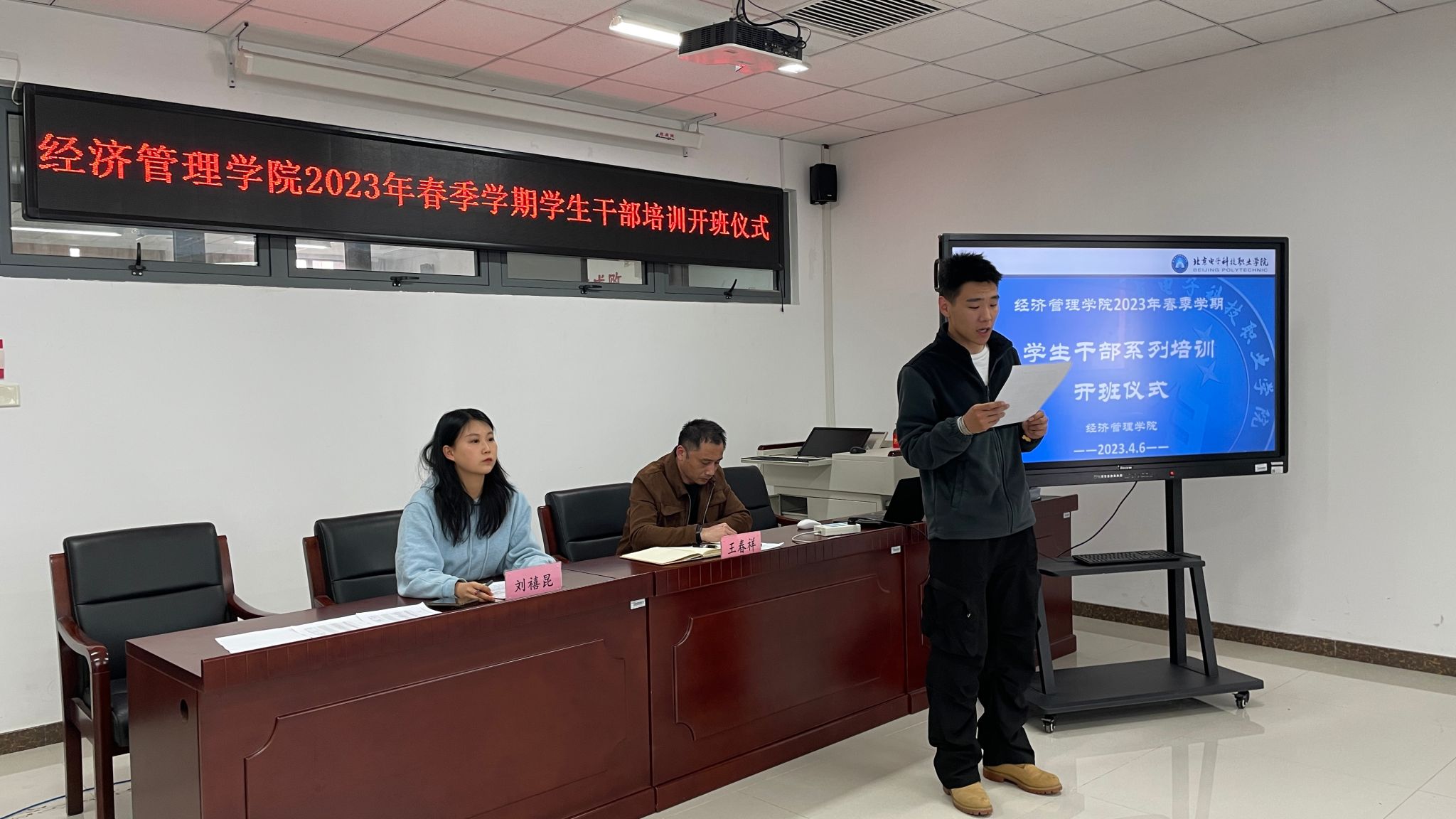 为深入贯彻落实党的二十大精神,提升学院学生管理工作水平,进一步加强学生干部队伍建设,提高学生干部队伍整体素质,激发学生干部的工作主动性和积极性,充分发挥学生干部在大学生思想政治教育中的桥梁纽带作用,4月6日,经济管理学院举办了 2023 年春季学期学生干部培训开班仪式。
