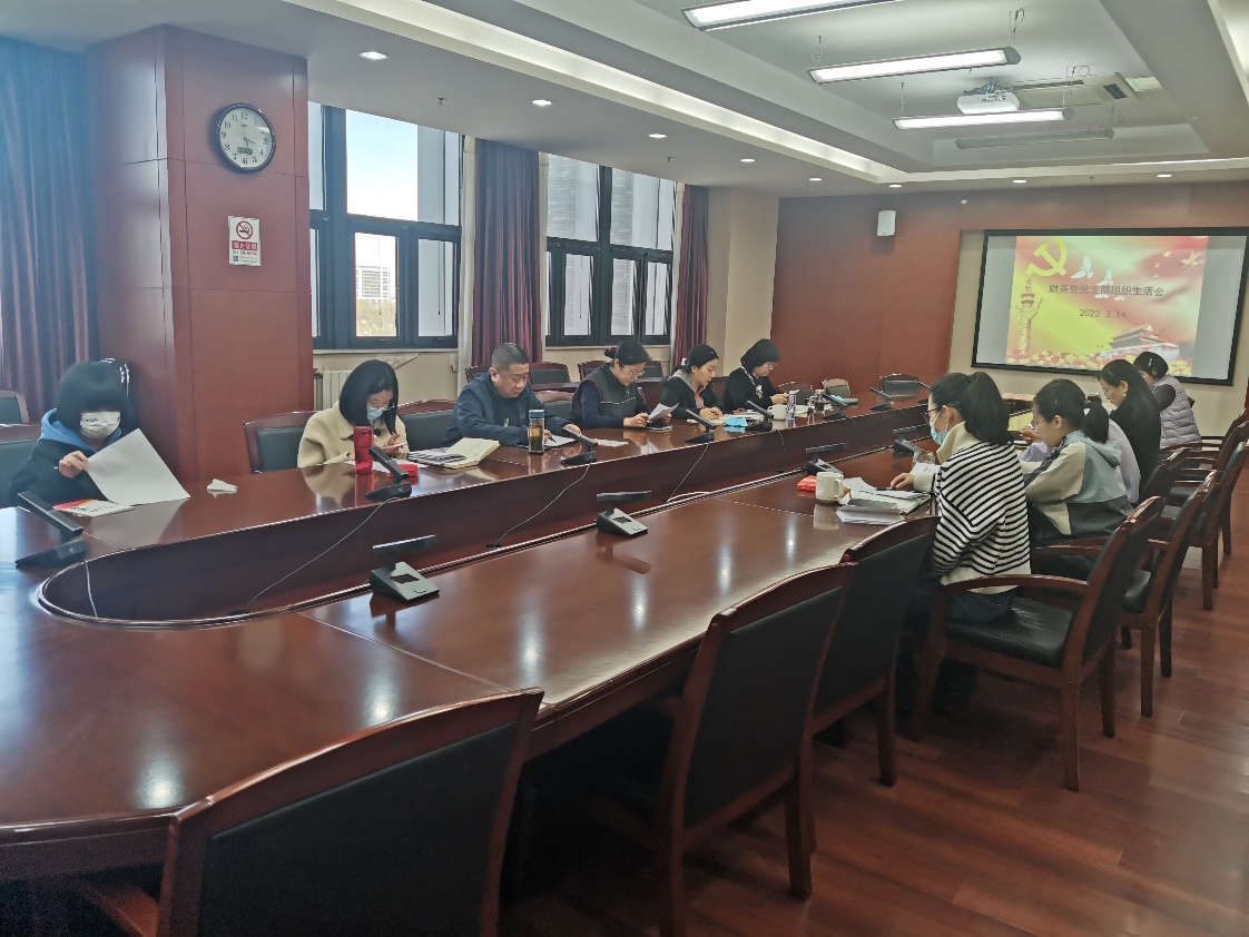 按照学校党委《关于召开2022年度基层党组织组织生活会和开展民主评议党员的通知》 要求,为认真学习领会党的二十大精神,3月13日,财务处党支部在行政楼510组织党员集中开展理论学习。支部书记张逢梅领学,全体党员集中学习《党章》和《党的二十大报告学习辅导百问》,尤其对党章修订的重点内容、党章中对党员的新要求进行了逐字逐句学习,重点学习了《党的二十大报告学习辅导百问》中有关职业教育的相关论述。