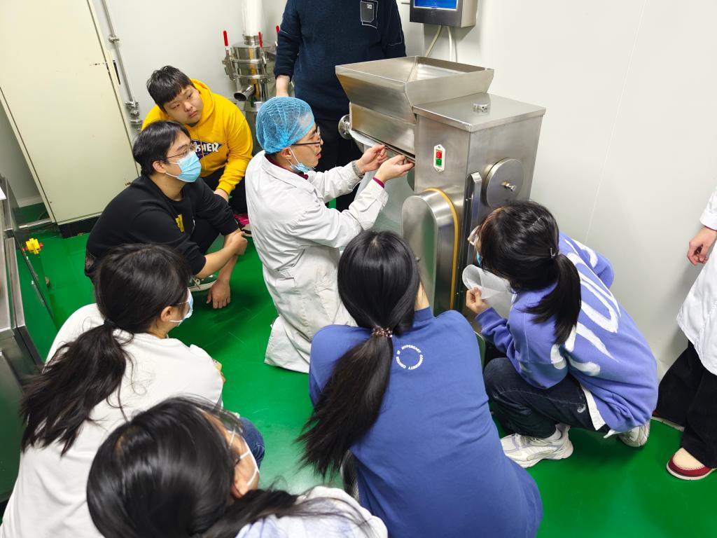 本次实践内容为“树莓利咽含片的生产”,涉及物料领取、粉碎配料、制粒、整粒、总混、压片、包衣等多个流程,培训团队由生物技术系为主的15名教师组成,其中7人为高级职称。培训中,指导教师耐心讲解实践原理,亲身示范设备操作,细心提示安全事项,严格要求报告撰写,充分展现了BEAT365的专业特色和教师风采。通过一周沉浸式培训,同学们认识了GMP车间的基本布局、了解了药物的生产标准、熟悉了制剂流程和操作要求,收获满满。
