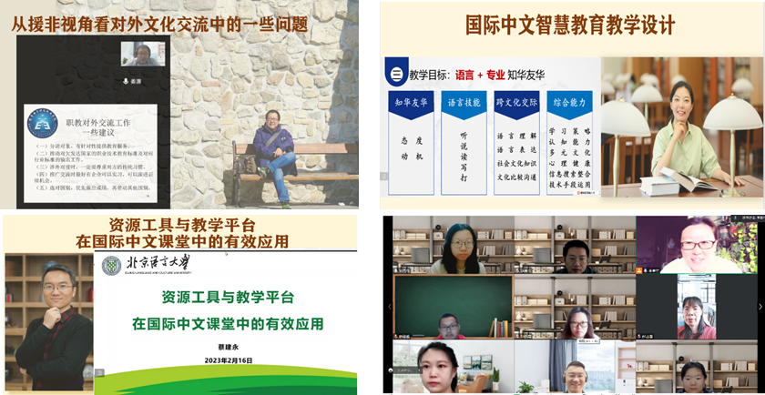 本次培训聘请了中非可再生能源合作创新联盟秘书长,北京对外文化贸易协会副会长姜灏先生、北京语言大学闻亭博士、蔡建永博士,分别作了题为《从援非视角看对外文化交流中的一些问题》《国际中文智慧教育教学设计》《资源工具与教学平台在国际中文课堂中的有效应用》的讲座,从跨文化交流、教学设计和教学资源获得及使用三方面进行了交流分享。三位专家中既有深耕国际交流合作领域的外交家,也有国际中文教育领域的青年才俊,三场讲座贴近实际、深入浅出,实用性强。参加培训的老师们表示,培训干货满满,对教学工作有着非常实际的指导意义。