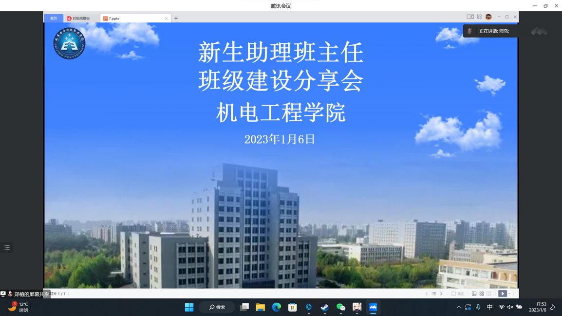 为进一步提升班级管理和服务育人水平,拓宽入党积极分子培养载体,发挥勤工助学工作育人职能,机电工程学院在充分总结2022年学生教育管理工作基础上,于2023年寒假期间召开“新生助理班主任班级建设分享会”,新生班主任、全体辅导员和助理班主任、新生班团骨干共70余人参加了会议。会议由新生班辅导员海楠楠主持。