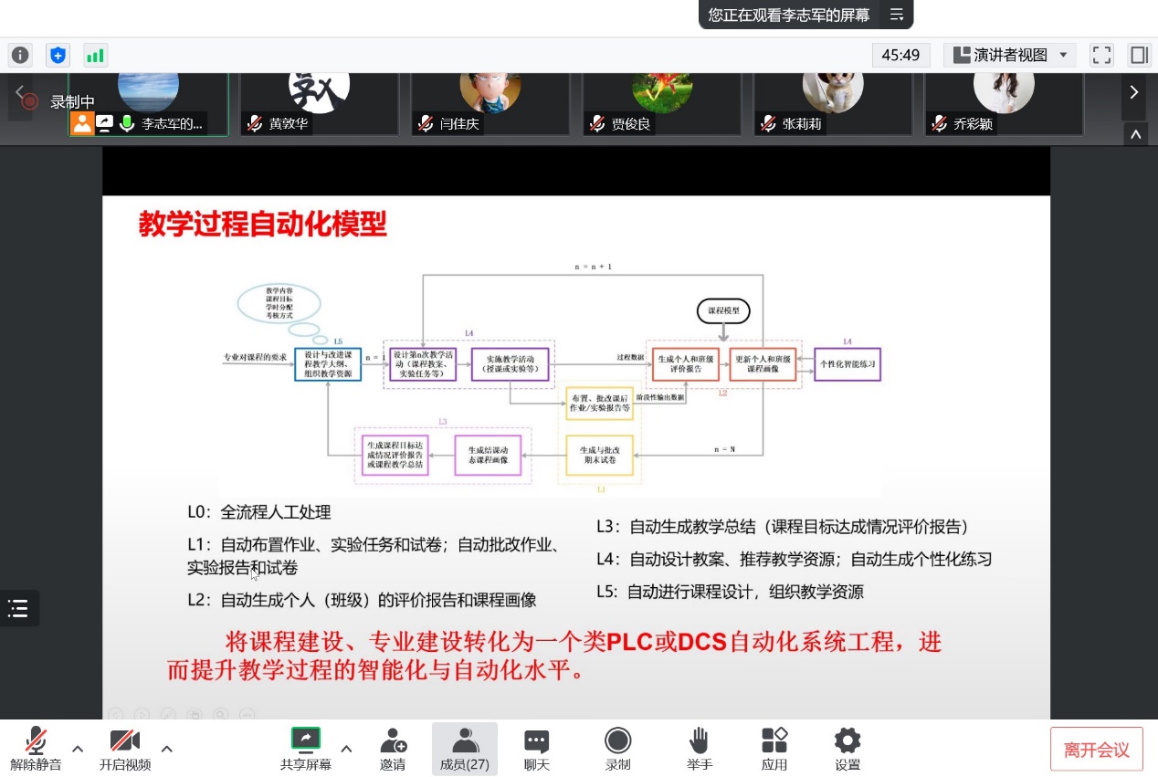 应北方工业大学(简称北方工大)邀请,1月10日上午,机电工程学院与北方工大电气与控制工程学院共同开展线上教学研讨,学院20余位教师参加,会议由北方工大电气与控制工程学院自动化系主任李志军主持。