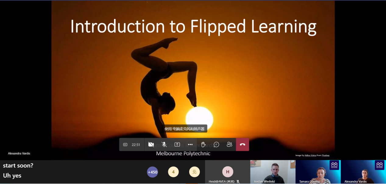 2022年12月7日,澳大利亚职业教育联盟(AVEA)联合墨尔本理工学院(Melbourne Polytechnic)共同举办“翻转学习(Flipped Learning)国际培训”,邀请澳大利亚翻转学习培训专家远程直播授课,生物工程学院组织教师通过Teams会议参加了本次线上培训。