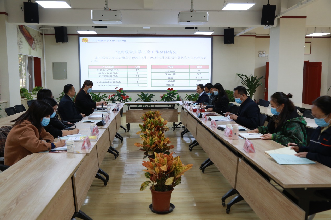 10月26日上午,学校工会负责人及两名工会干部到北京联合大学调研交流,受到北京联合大学工会常务副主席操静涛及工会干部的热情接待并展开座谈。北京教育科学研究院工会干部一同参加调研。
