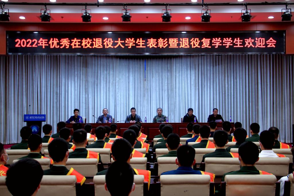 10月26日下午, 2022年优秀在校退役大学生士兵表彰暨退役复学学生欢迎会在机电工程学院报告厅举行。党委武装部负责人、部分二级学院党总支副书记、辅导员、退役学生参加了大会。