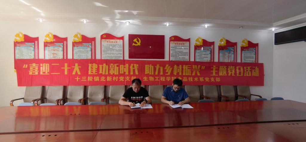 作为博士团助力乡村振兴的首次活动,生物技术系党支部、食品技术系党支部、环境技术系党支部分别与永陵村、北新村、德陵村党支部签署了共建协议,为三个村党支部的“北电科生物博士团助力乡村振兴”挂牌,并向对方赠予了党的基层组织建设、农业技术、乡村文明建设等书籍。