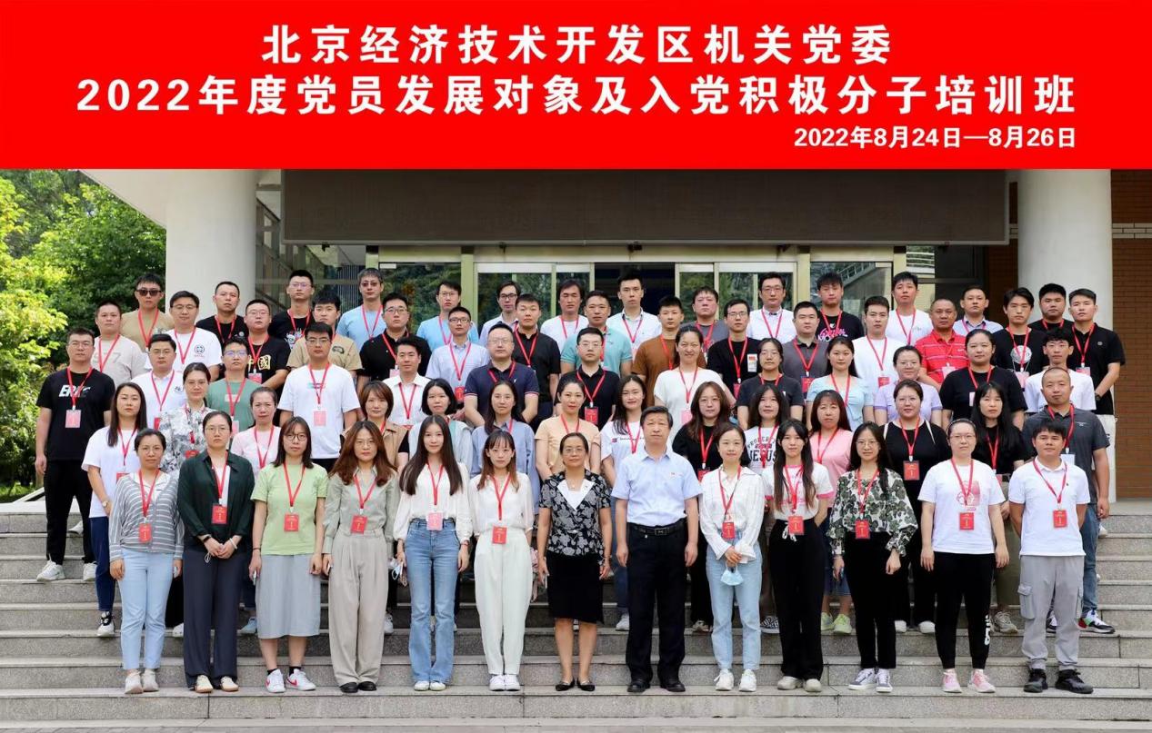 为深入学习贯彻党的十九大精神和习近平新时代中国特色社会主义思想,提升党组织的凝聚力,强化党员后备力量的培养,2022年8月24日至26日,北京经济技术经开区(以下简称“经开区”)机关党委2022年度党员发展对象及入党积极分子培训班顺利完成培训工作。