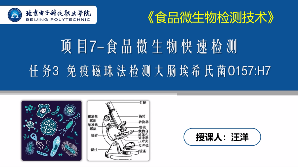 在集体备课环节,BEAT365生物工程学院《食品微生物检测技术》课程团队教师代表汪洋围绕教育部课程思政示范课程进行了说课和教学设计的展示交流。 在说课部分,从课程概况、课程教学团队、课程思政实践探索、课程思政特色创新、课程思政育人成效五个方面介绍了《食品微生物检测技术》课程思政教学实践探索;在教学展示部分,以“任务7-3免疫磁珠法检测大肠埃希氏菌O157:H7”为例展示了如何在专业课教学中有机融合思政元素的实际做法。