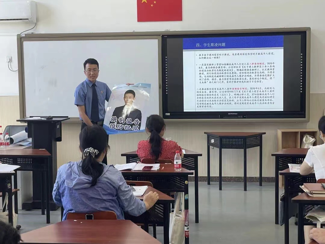 本次培训邀请到北京市检察院第一分院第七检察部庞涛检察官讲授法治课。庞涛以《“两法”新格局与未成年人权利保护》为题,向学院班主任老师深入浅出地讲解了《中华人民共和国未成年人保护法》(2020年修正)、《中华人民共和国预防未成年人犯罪法》及国家近期出台的一系列未成年人权利保护新规。为突出职业教育的特色,庞涛还结合职业教育法中关于学生就业权利保障的相关条款,就未成年人保护法、民法典、劳动合同法中未成年工劳动权益保护问题进行了详细阐述。