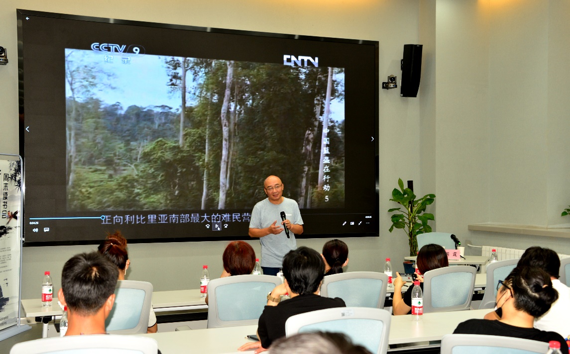 本次读书会邀请到了《从菜鸟到大师》的作者,著名导演周霆,通过对《中国蓝盔在行动》等纪录片的片段欣赏,来讲述纪录片的创作过程,分享创作经验,同时在现场为大家讲解和演示日常用到的短视频创作技巧。普极科技张先生告诉记者,“今天的分享太好了,非常有用!我们企业经常会用到短视频拍摄用来做宣传,现在知道了前期创意、后期用手机实际拍摄的技巧,回去可以琢磨学习,希望能继续听到更详细的分享。”