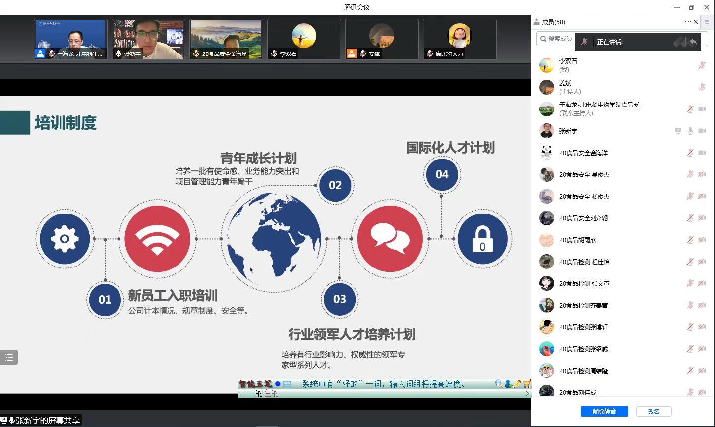 20食检班和20食安班共71名学生参加了线上宣讲会。食品技术系主任于海龙向学生介绍了创新型人才培养的具体内容和下学期工作的具体安排。中轻检测认证有限公司、北京康比特体育科技股份有限公司、SGS-通标标准技术服务有限公司和麦当劳(中国)有限公司四家企业的企业代表或人力资源主管分别对企业发展历程、主营业务、企业文化、招聘岗位需求、发展空间和待遇进行了详细的介绍。企业宣讲后,同学们纷纷向心仪的企业投递了简历,用人单位将安排在近期进行面试。