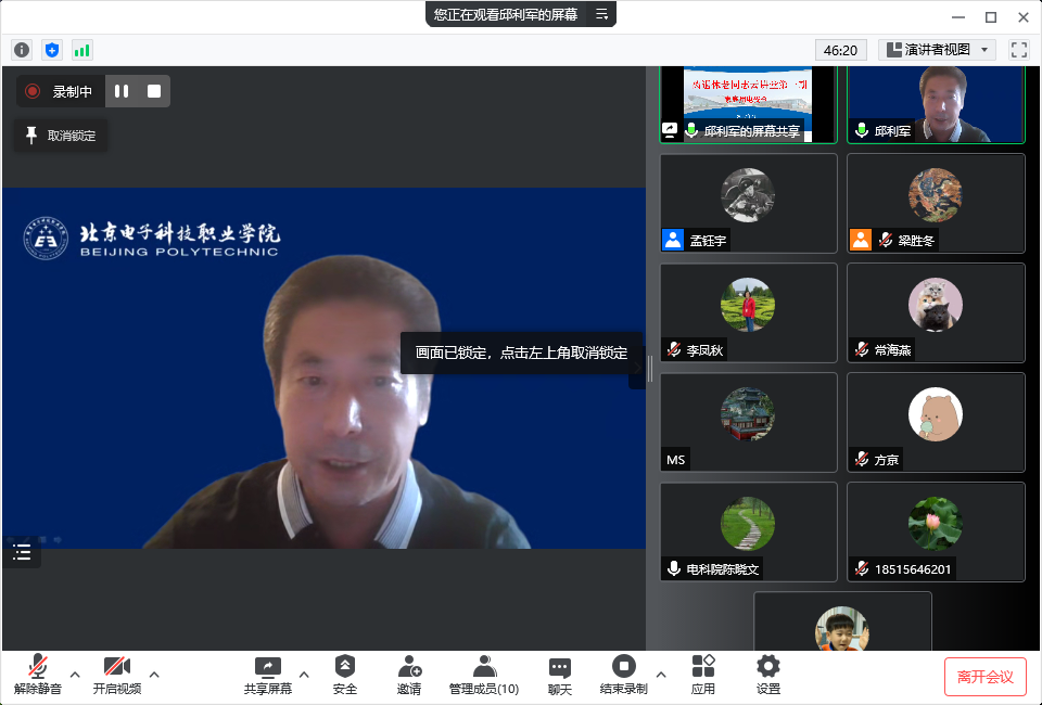 为深入贯彻落实市委、市政府《关于加强新时代首都老龄工作的实施意见》,进一步丰富离退休老同志的精神生活,满足离退休老同志老有所学,终身学习的需求,学校继续教育学院和离退休工作处联合举办了北京电子科技职业学院离退休老同志“云讲堂”活动。继5月27日开展了第一期活动后,于6月22日、24日陆续举办了第二、三期讲座,“云讲堂”继续采用线上腾讯会议的方式开展,由继续教育学院常海燕老师主持。