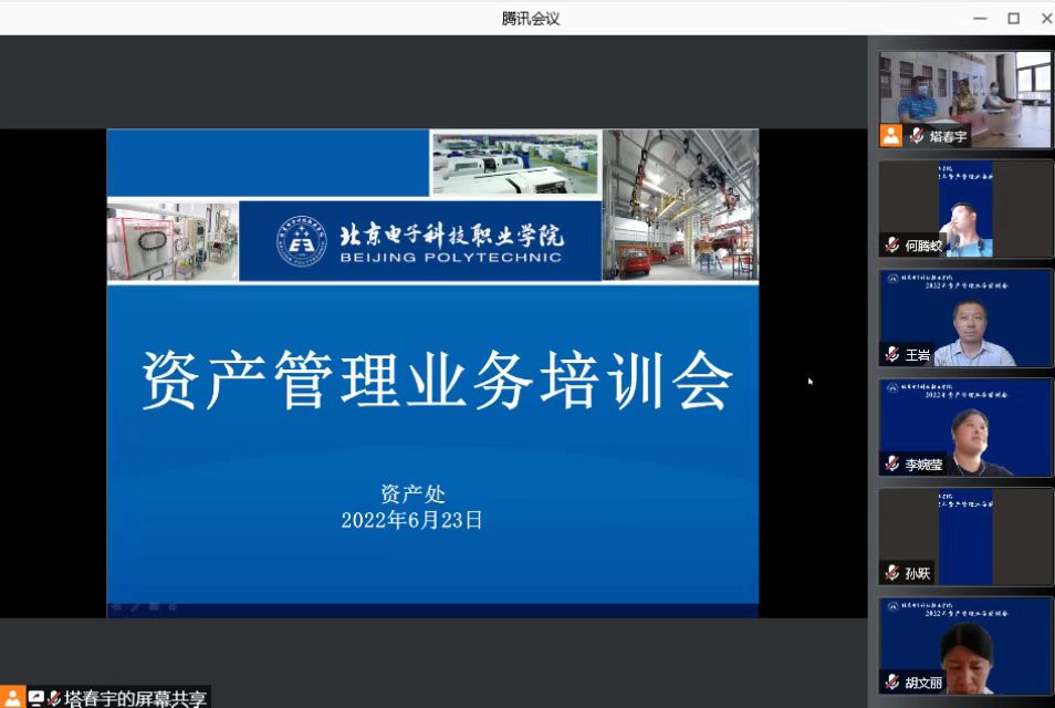 刘静首先代表学校资产处对全体人员的辛勤付出与大力支持表示衷心的感谢,随后,传达学习了北京市教委关于公物仓管理、大型科研仪器设备共享平台管理等方面的政策要求;通过文件修订前后对比分析的方式,带领大家深入学习了《关于调整市教委所属高等院校国有资产处置权限的通知》《学校固定资产处置实施细则》等文件;布置了2022年学校资产抽查盘点、资产管理信息系统梳理工作。资产处塔春宇就上级资产处置抽检审计要点及指标分析进行了重点解读;牛玥鹏讲解了资产入账、资产调拨等业务流程。