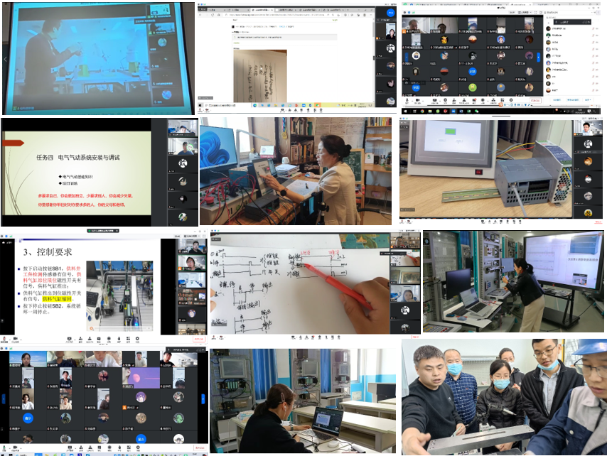 各显神通,在线教学精彩纷呈。机电专业系教师本学期大部分为理实一体化课程,居家教学,教师们面临没有设备、不能操作,学生没有电脑、不能安装软件等一系列实际困难。为了切实提高教学效果,激发广大学生的学习兴趣,老师们提前准备,各显神通。很多教师在开学初抓住一切能到校的时间,在实验室进行直播授课,边操作边录制,为居家教学提供很好教学素材;自制教具,自制动画等多种手段提高教学效果,力争达到线上线下同质同效。