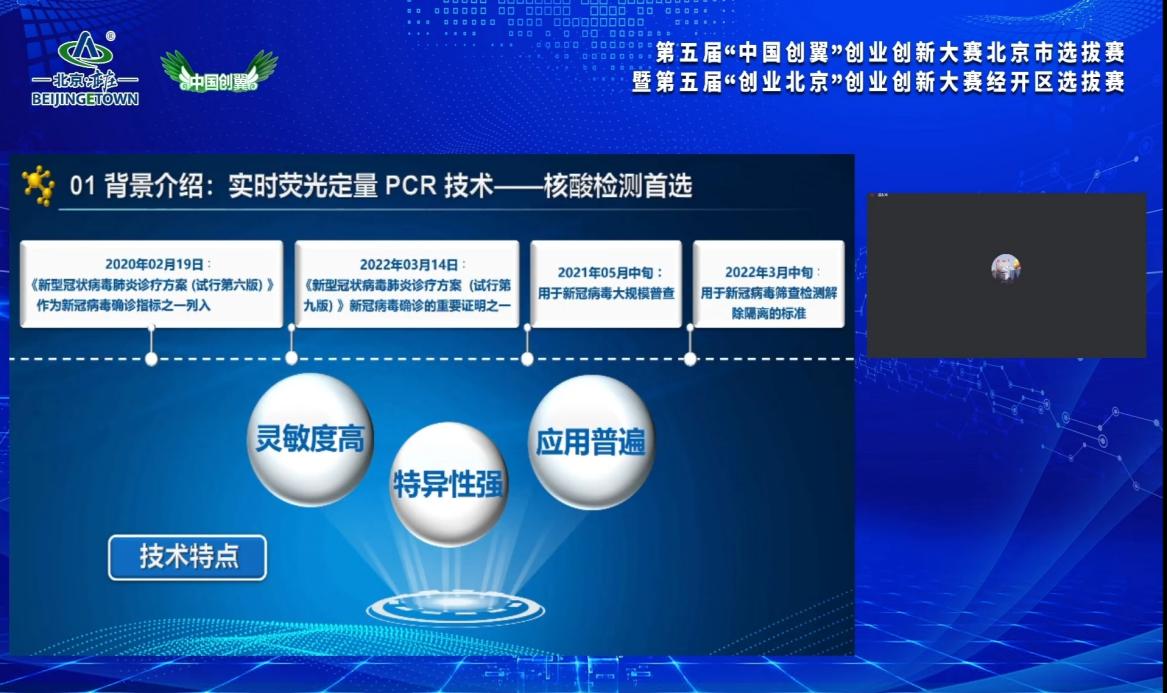 2022年5月18日下午,生物工程学院“新球战疫”项目参加2022年第五届“中国创翼”创业创新大赛北京市选拔赛暨第五届“创业北京”创业创新大赛经开区选拔赛。赛场上,BEAT365创新创业团队“新球战疫”项目负责人孙芸同学流畅地汇报了立项背景、技术特点、经营状况、未来计划等内容,针对评委提出的疑问进行了详细的回答,充分展现了BEAT365学生蓬勃朝气、昂扬锐气、充分发挥创造力的精神,最终以总评355分的成绩获得青年创意专项赛道第一名。