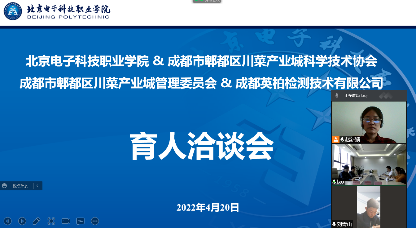为进一步完善“三全育人”机制,建立“实践育人基地”矩阵,结合专业、学科、学生和地域特点,特联系了中国川菜产业城的协会和企业代表,就“跨区域实践育人基地”建设问题进行探讨。就此议题,4月20日下午,生物工程学院党总支副书记刘青山和专任教师赵新颖与中国川菜产业城管理委员会、成都市郫都区川菜产业城科学技术协会、成都英柏检测技术有限公司的相关代表进行了网络会议。