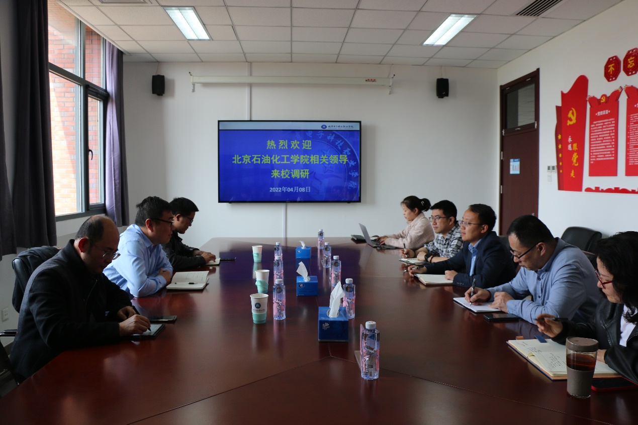 2022年4月8日下午,北京石油化工学院制药工程系主任温振国、副主任彭效明和张荣月一行三人应邀到生物工程学院调研交流。生物工程学院副院长陈亮、生物技术系主任冯晖、食品技术系主任于海龙、教运办主任危晴等人参与了座谈,会议由副院长陈亮主持。