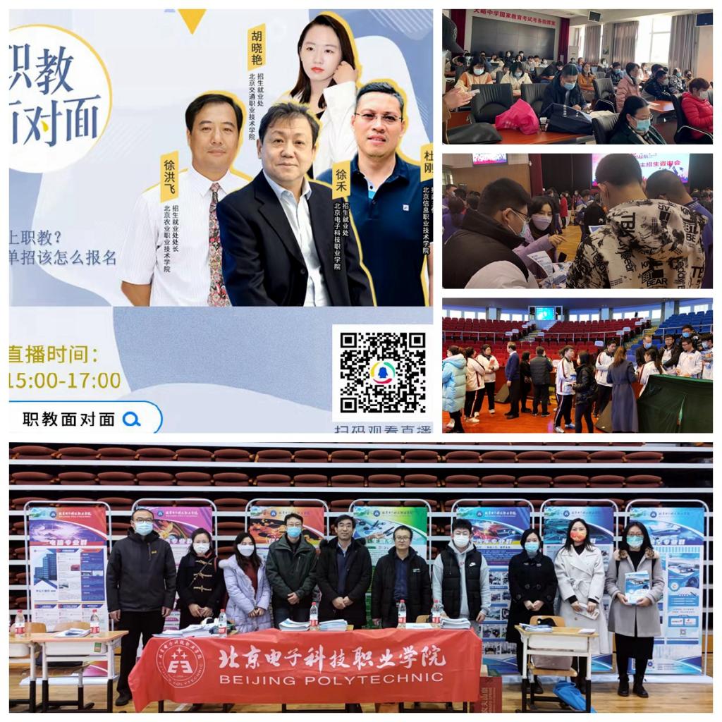 招生宣传视频《前行》,以学生的视角讲述在电科的成长故事,更加能触动考生的心弦;新颖的《报考指南》以方便传播的电子书和装帧精美的纸质画册的形式并行发布,更加吸引人们的眼球;统一设计制作的专业群介绍“易拉宝”在中学咨询会现场展示,契合学校整体雄厚的办学实力;与各城郊区的密切沟通奠定了生源校组织报考的基础,深入通州区张家湾中学、平谷中学、北京师范大学附属平谷第一中学、门头沟区大峪中学等各区县中学进行现场宣讲和咨询,让更多考生和家长对学校有更直观的了解和更全面认识;积极联系生源校,在疫情防控条件允许的情况下,组织考生来校进行现场参观;参加腾讯新闻《职教面对面》栏目高职招生专题直播,深入解读高职自主招生政策和学校办学优势;微信小程序、学校官网、公众号及时同步更新招生宣传信息,访问数量显著提升;日常咨询电话一刻也不停歇,耐心解答考生及家长的各种疑问。