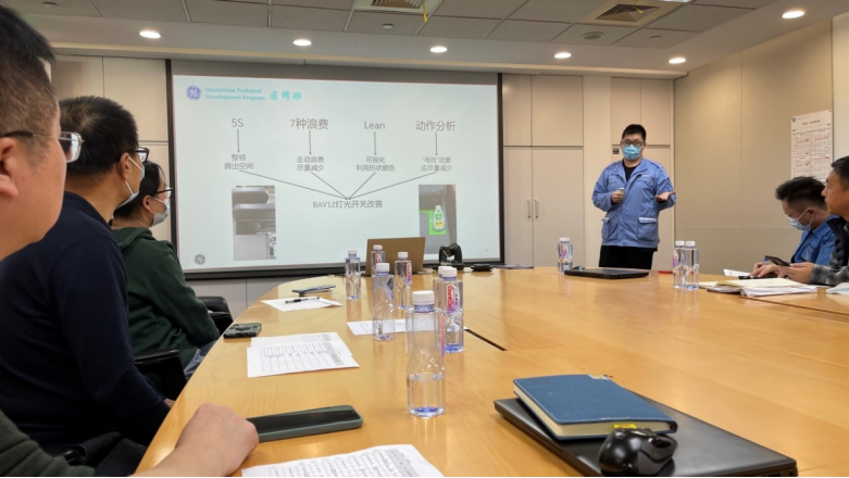 随后,学员汇报完成后生产经理总结点评,他表示很高兴看到学生们在短短的四个月学习实践中的进步和成长,感谢学校前期奠定的培养基础;希望学生们珍惜工作平台并发挥所长,GE医疗是全球领先的医学成像、监护、生物制造以及细胞和基因治疗技术提供商,通过提供智能设备、数据分析、软件应用和服务,实现从疾病诊断、治疗到监护全方位的精准医疗,尽快成为智能制造一份子!