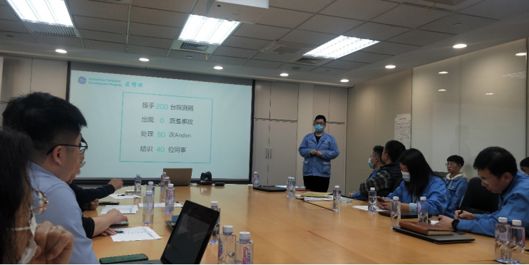 首先,15名学生分别从自我介绍、实践岗位介绍、实践学习内容和实践学习成果(含培训、实践、收获等)四方面进行5分钟汇报,BTL和老师们进行现场5分钟提问、打分和点评。目前,学生们进行轮值的有M3工位操作员、Gantry组装/测试操作员、机柜组装/测试操作员、装配改善专员、Plate Assembly、PI&Plasma、DAS Assembly等岗位,根据各岗位的工作职责,学生们在完成平时理论知识、素养微课程学习的同时,主要完成日常工作中发现的不足并进行改善。对问题的改善分别从观察与问题描述、思考与改进和结果等方面进行描述和讲解,可以看出学生们在发现问题、分析问题和解决问题能力,以及表达能力和学习能力都得到了极大提高,得到与会项目经理和老师们的高度评价。