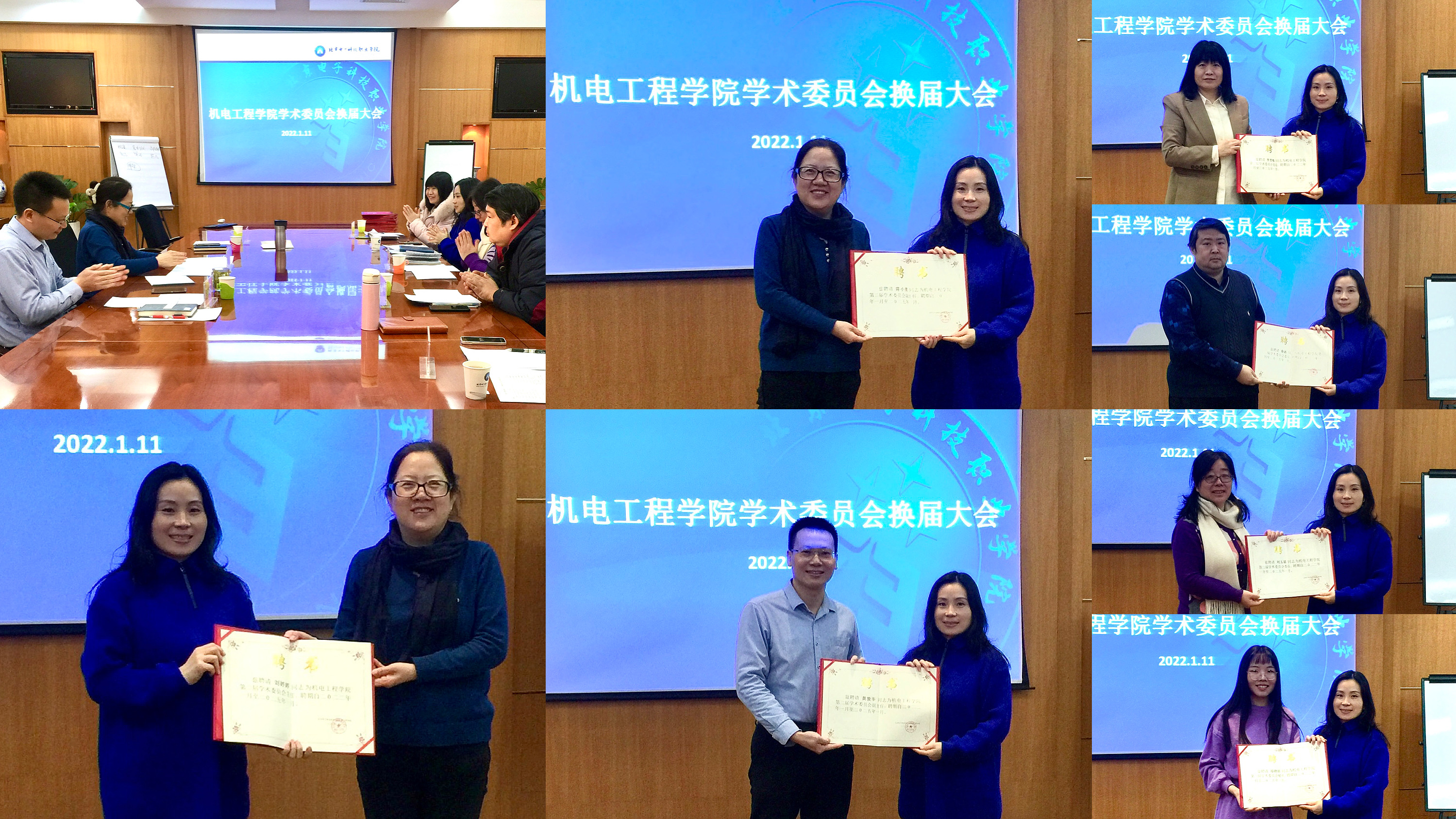 首先,机电工程学院陈小荣院长宣读了《机电工程学院第二届学术委员会委员候选人名单》,与会成员对所有候选人一致表决通过。陈小荣院长向第二届学术委员会主任刘婷婷颁发聘书,随后,刘婷婷老师依次为各位学术委员会委员颁发聘书。