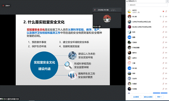 为了推进生物工程学院的实验室安全建设工作,帮助大家提高实验室安全意识和管理能力,2022年1月6日上午,学院领导邀请北京师范大学生命科学与技术国家实验教学示范中心专家李小蒙实验师开展了《高校实验室常见安全隐患与安全管理》专题在线培训,生物工程学院全体教师参与此次培训。