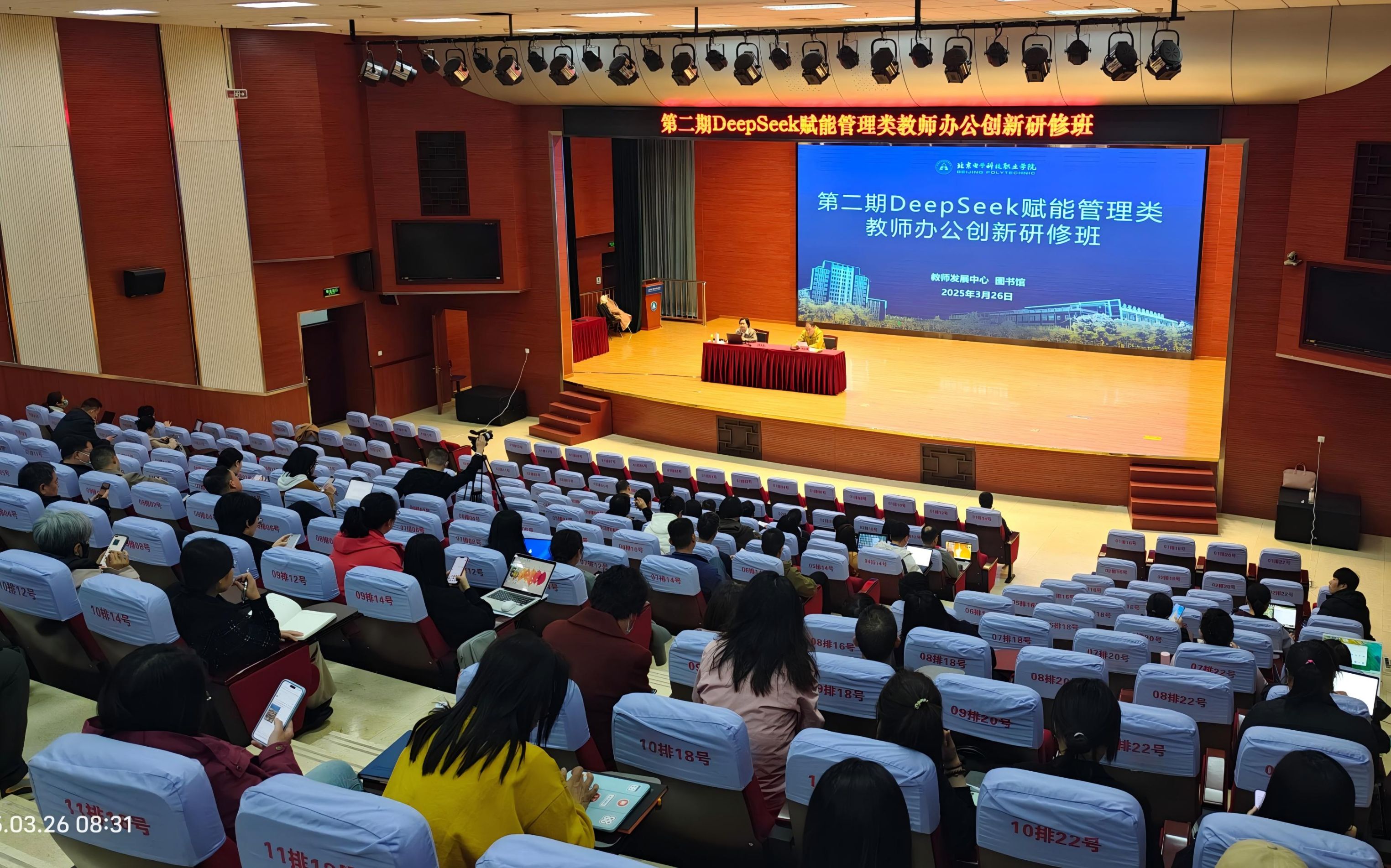 第二期以“DeepSeek赋能办公创新”为主题,聚焦管理类教师的数字化转型需求,重点培训智能办公工具的应用与实践。课程包括DeepSeek辅助整理会议纪要,撰写会议通知和工作总结,辅助制作和美化PPT等内容,帮助教师提升办公效率与管理效能。培训专家现场演示了智能文档处理、多平台协作及数据可视化工具的操作技巧,参训教师通过实战模拟快速掌握了数字化办公的核心技能。