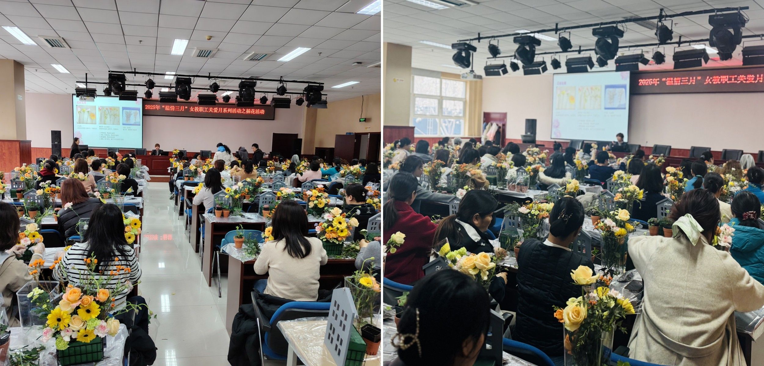 为庆祝“三八”国际妇女节,丰富女职工文化生活,3月14日下午,校工会在学生活动中心报告厅组织女职工开展了“花样年华”插花活动,共有100余名女职工参加本次活动。