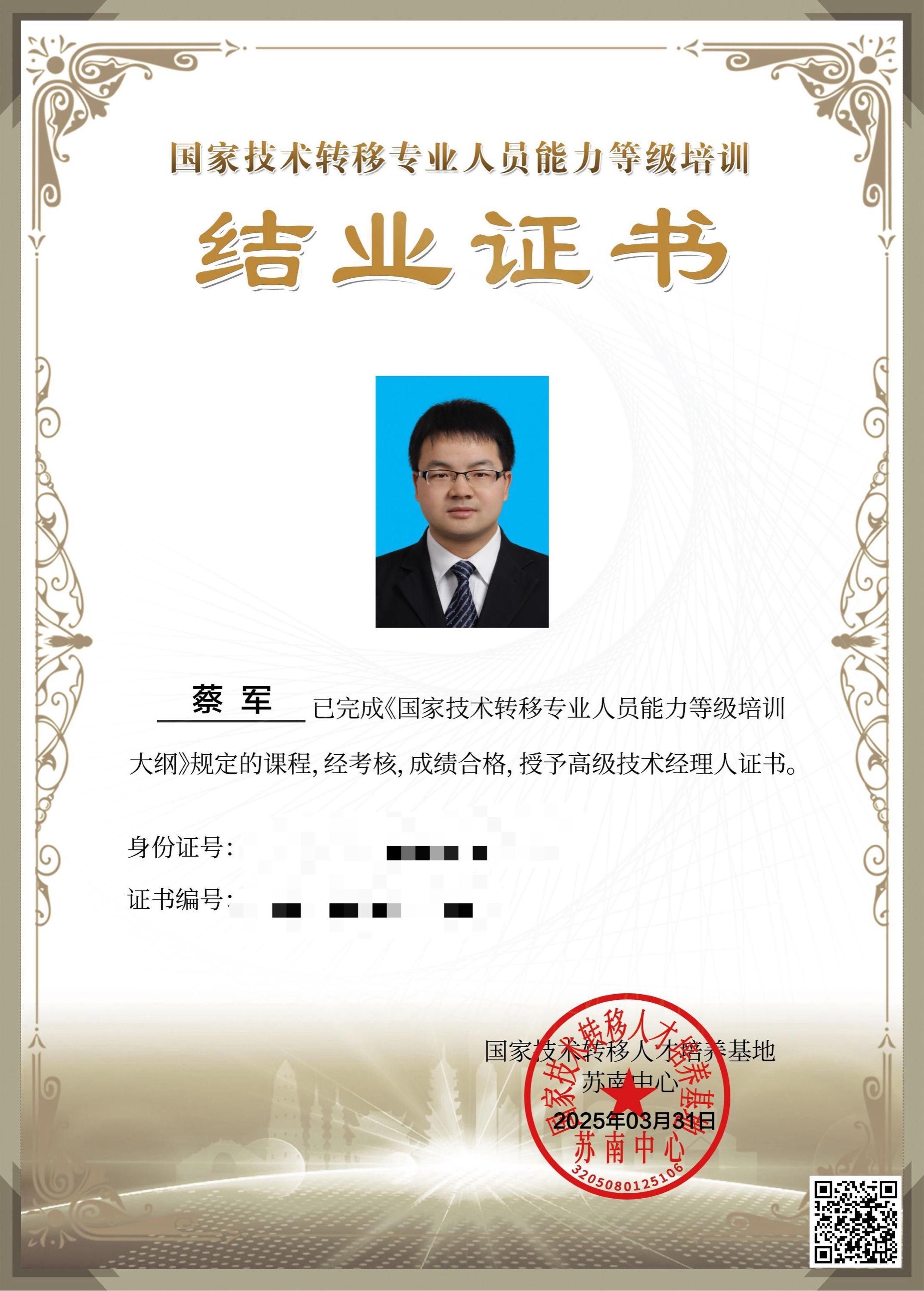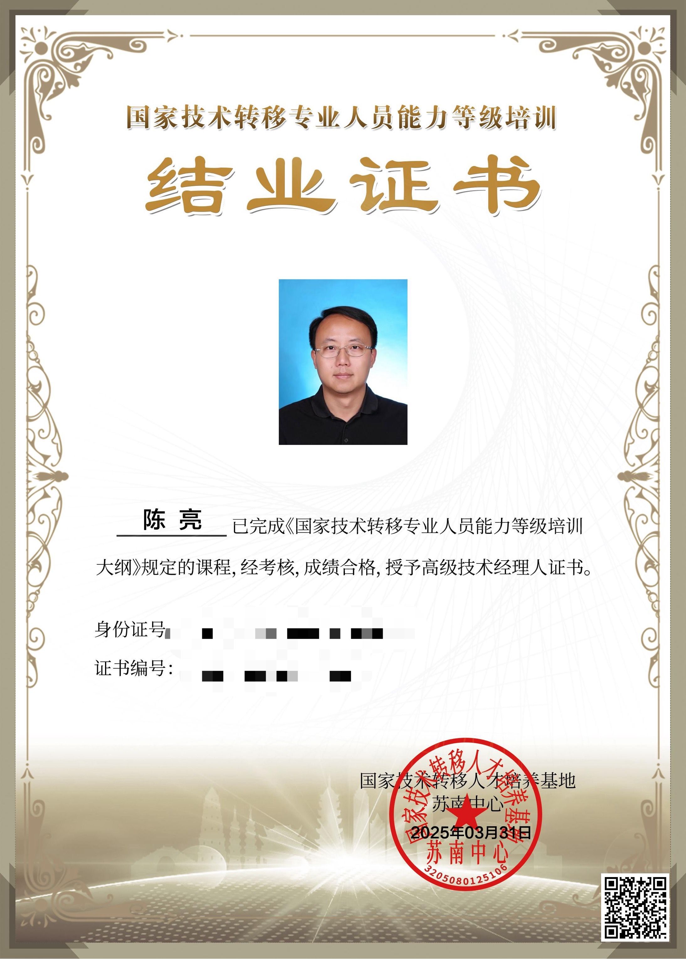 通过培训,两位老师不仅掌握了先进的技术转移理念与方法,还结合自身研究领域,对科技成果转化路径、知识产权运营策略等有了更深刻地理解。经过严格的结业考试与案例分析报告评审,他们凭借出色的表现与扎实的专业知识,成功获得了国家技术转移人才培养基地颁发的高级技术经理人证书。这一荣誉标志着他们在科技成果转化与技术转移领域已经具备了较高的专业素养与实践能力。