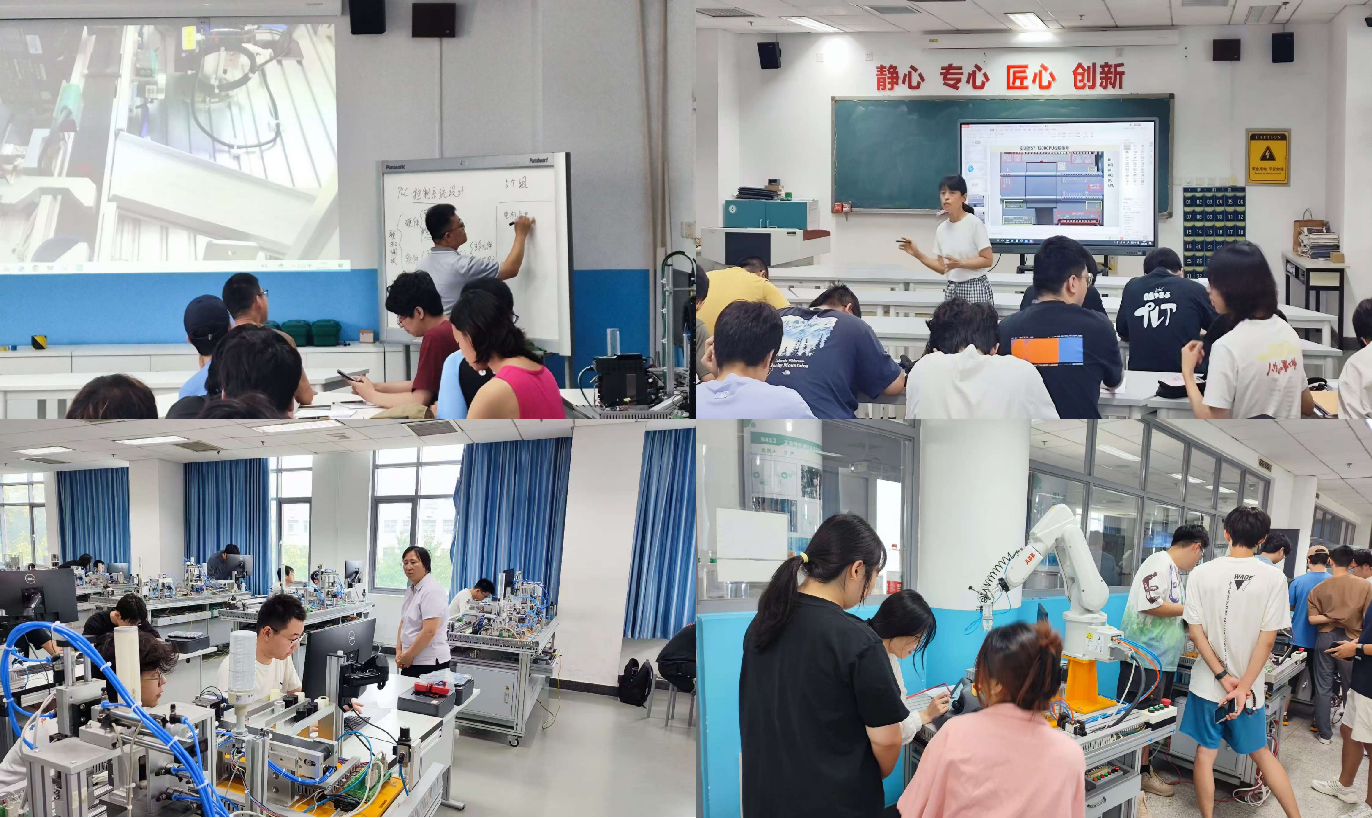 本次实践教学内容涵盖工业机器人编程与操作、药片智能产线编程、PLC控制技术和自动化生产线装调四大核心模块。实践教学期间,北石化的同学们热情饱满,认真掌握设备操作要点,积极动手实践,规范记录调试数据,并拍摄记录了培训过程。“这里的实训设备和企业主流应用完全同步,像智能产线的编程逻辑、机器人的离线编程方法,都是现在工厂里正在用的技术。”学生在调试机械臂运行轨迹时说,“课堂上学的PLC控制理论,今天在实训台通过接线、编程、调试一步步落地,这种‘做中学’的感觉特别直观。”