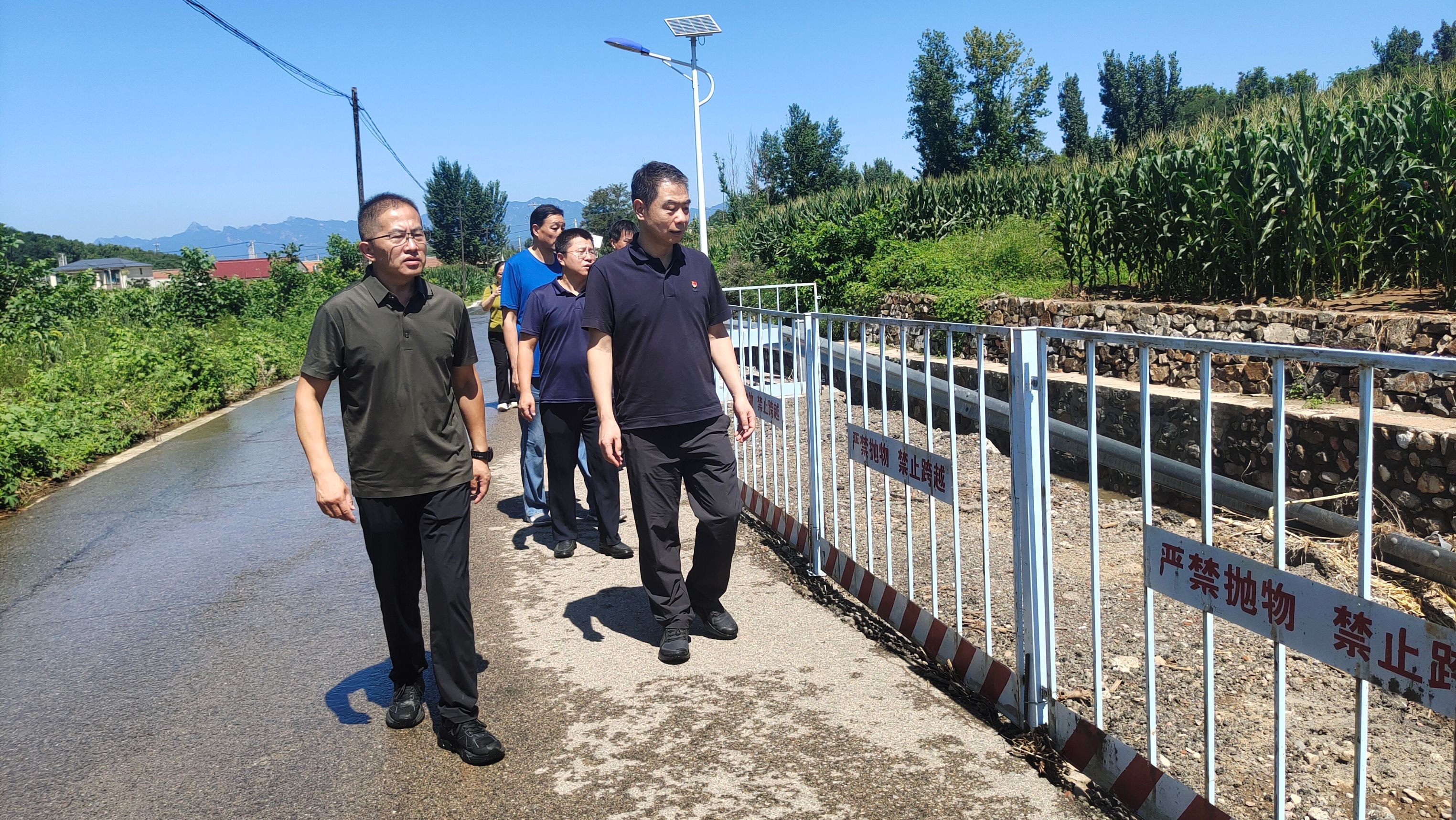 高强一行深入东学各庄村进行了实地走访,了解房屋受损、道路积水、农田被淹等受灾情况,详细了解受灾村民的生活状况,并赠送生活物资。