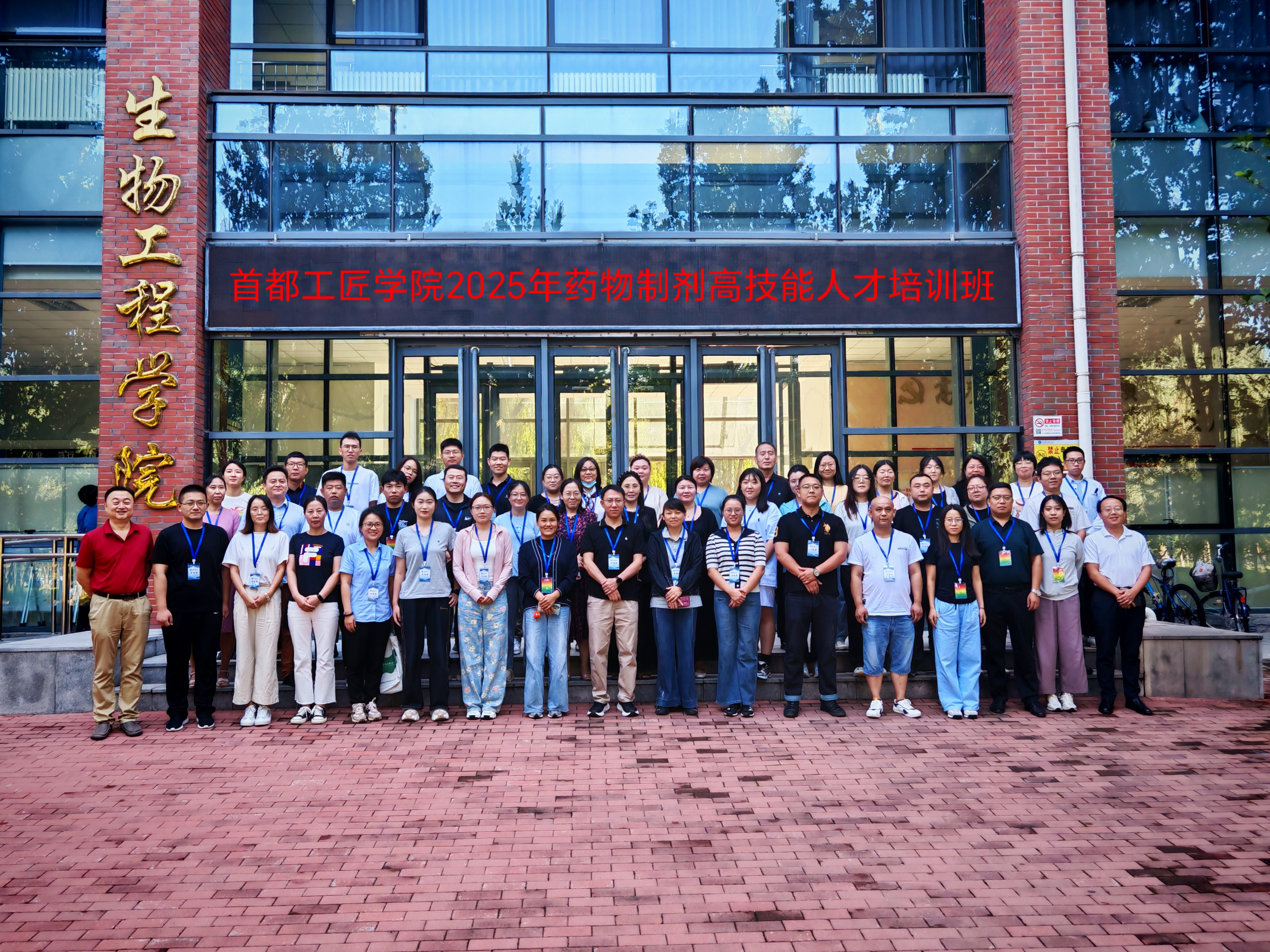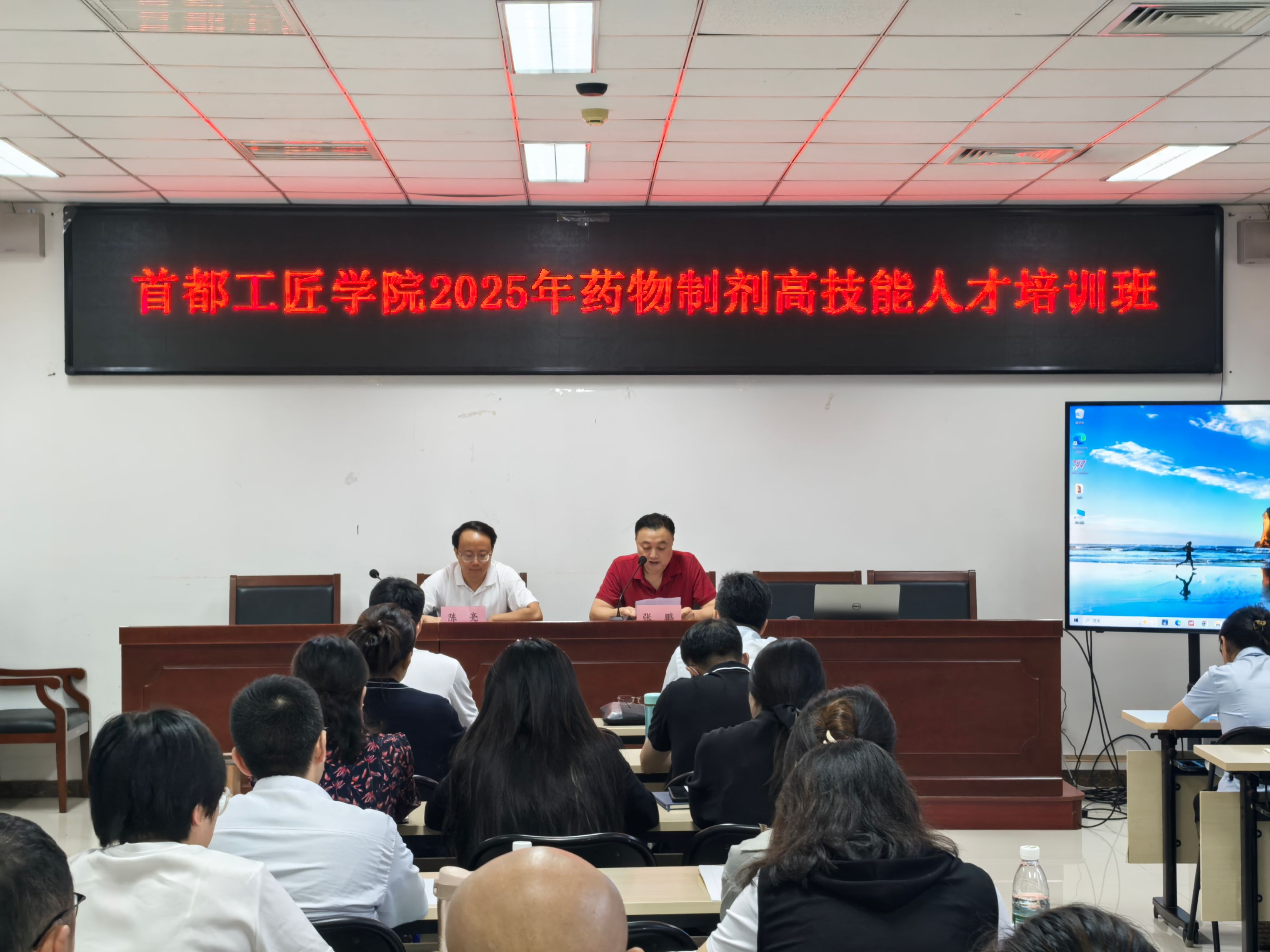 8月25日上午,在生物工程学院433教室,首都工匠学院2025年药物制剂技师人才培训班开班,生物工程学院院长陈亮、工会常务副主席张鹏以及50名来自各企事业单位的参训学员参加了开班仪式。