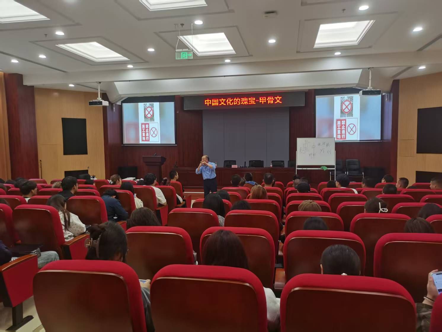 9月22日下午,校工会联合艺术设计学院分工会在艺术设计学院报告厅举办了“中国文化的瑰宝——甲骨文”专题讲座。来自艺术设计学院和航空工程学院的80余名学生和工会干事聆听了讲座。