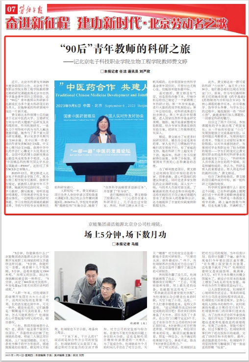 【劳动午报】“90后”青年教师的科研之旅——记北京电子科技职业学院生物工程学院教师费文婷