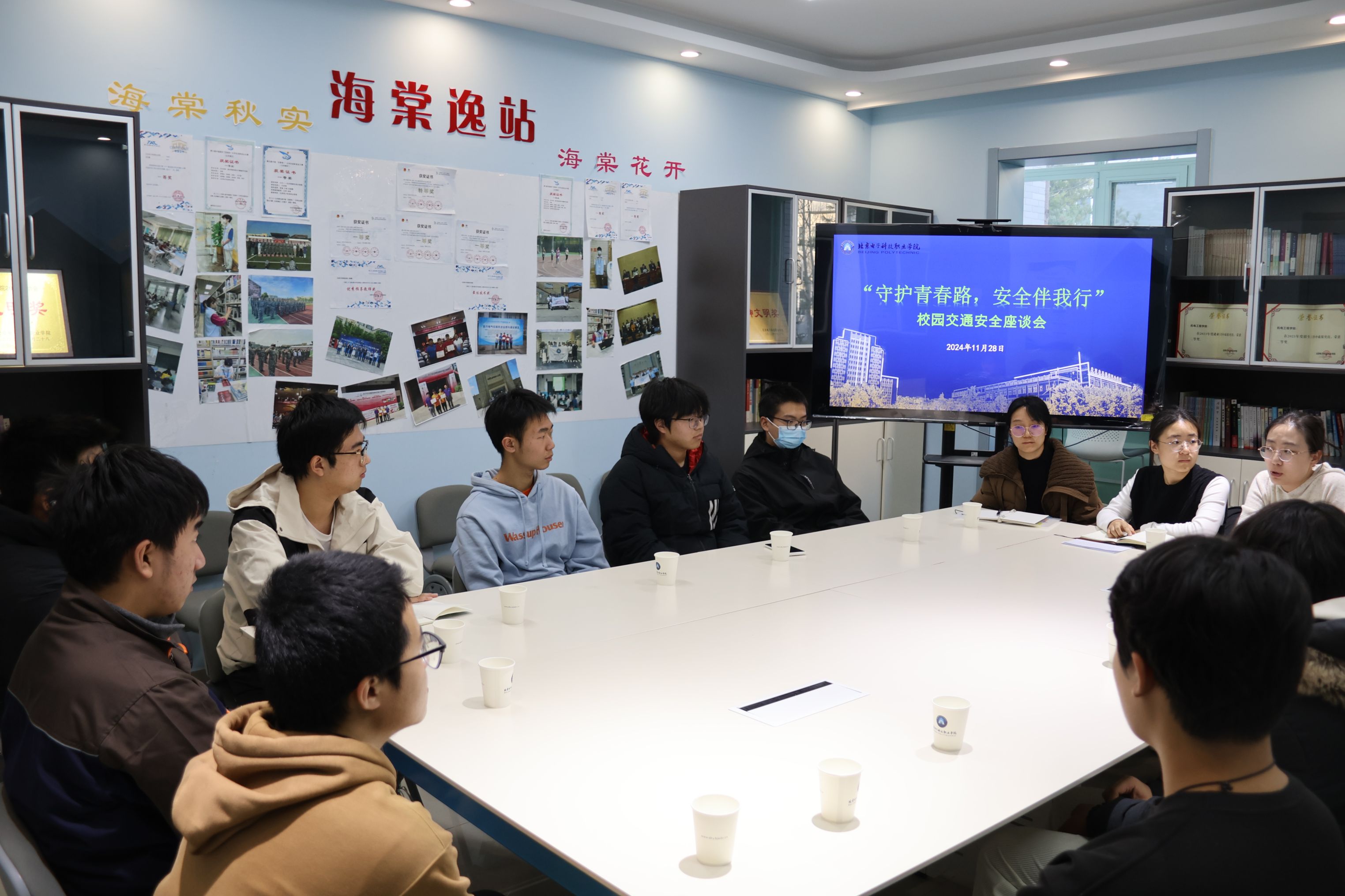 为持续推进平安校园建设,充分了解学生生活状态、倾听学生需求,畅通学校与学生之间的沟通交流渠道,着力营造和谐安全的校园环境,11月28日,机电工程学院在学生公寓E座“一站式”社区召开校园交通安全座谈会。辅导员王丽、郭香凝、朱莉及学生代表参与此次活动。