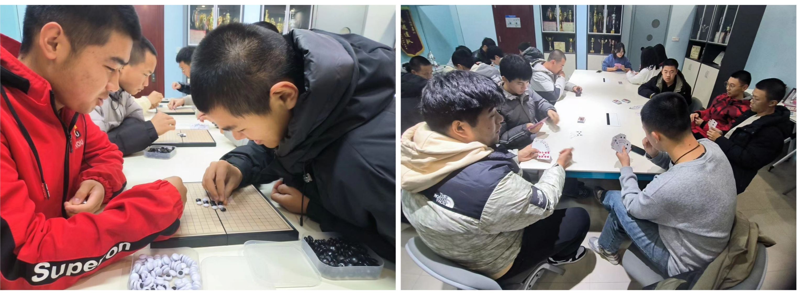 元旦期间,党团工作站举办五子棋、扑克牌和观影等活动,吸引了许多学生参与,营造了欢乐祥和的节日氛围。大家纷纷表示,元旦特色活动不仅让同学们度过了一个愉快的假期,还丰富了课余生活。通过这些活动,大家锻炼了思维能力,增进了友谊,加深了对“一站式”学生社区的认识和了解。
