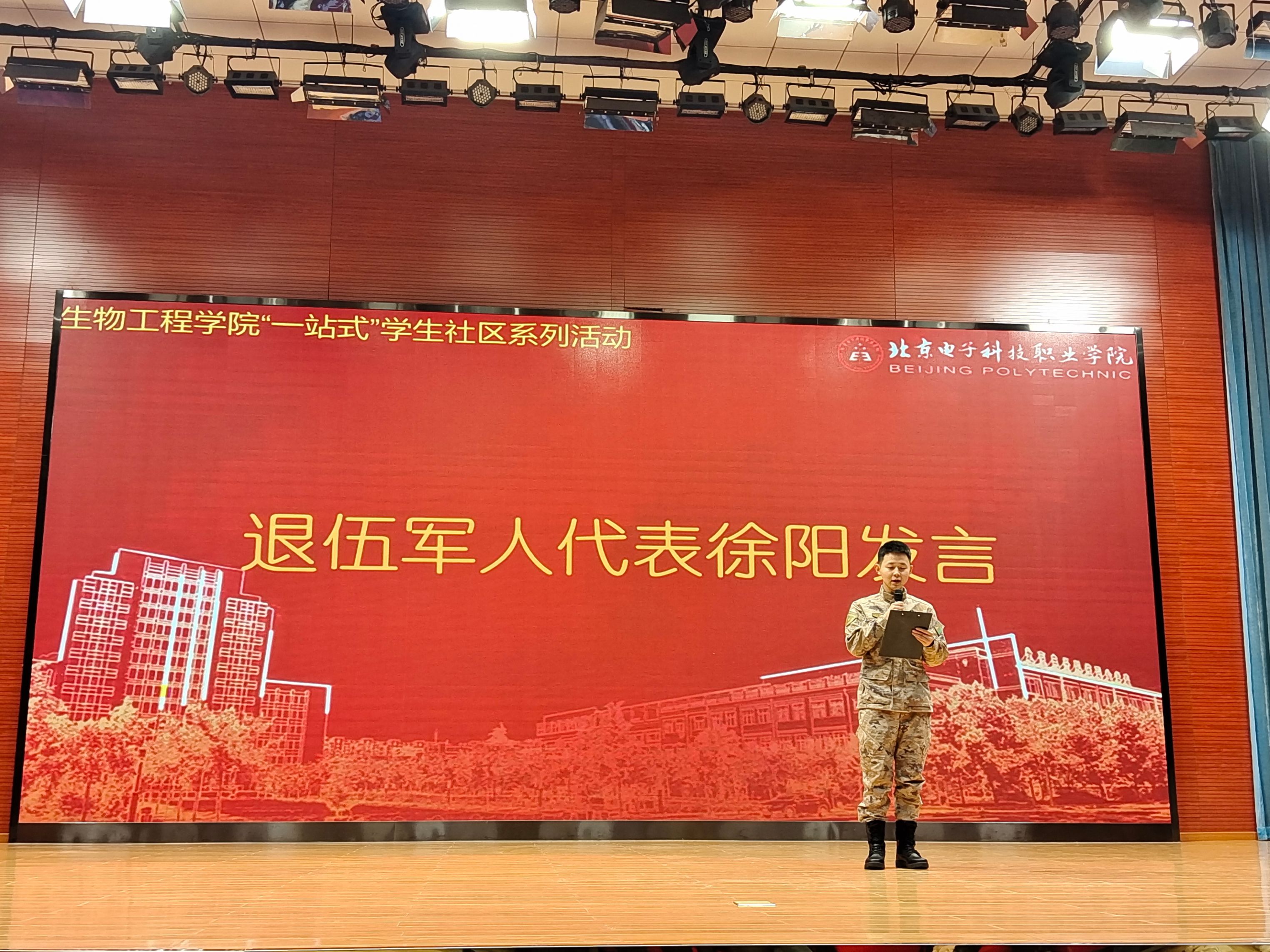 展演间隙,23食品安全班的退役复学大学生士兵徐阳为大家分享了他两年军旅生涯的收获和感悟。胡浩作为学院负责征兵专项工作的辅导员,为大家详细讲解了征兵的政策,介绍了学院目前的征兵情况,鼓励大家携笔从戎,报效国家。