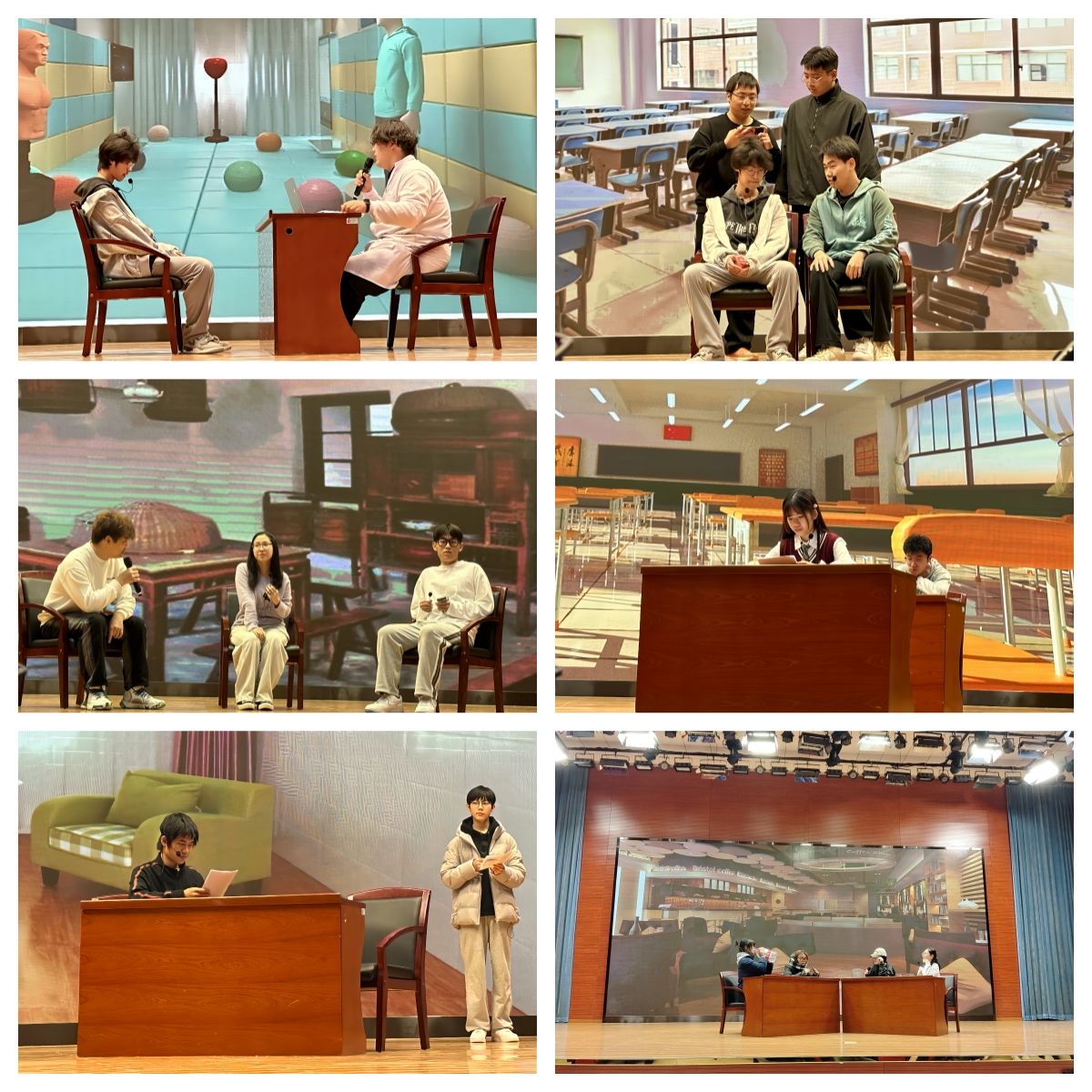 报告厅内人头攒动,暖意融融。特邀表演嘉宾红斑乐队带来一首节奏欢快的歌曲《只有音乐才是我的解药》,点燃全场观众们的热情。随后,各班选送剧目逐一上台进行展演,主题涉及到寝室关系、同学关系、恋爱关系、家庭关系、学业压力等各方面,演员们用精美的服饰道具和专业的演技,把观众们带入到一个又一个情感丰富又充满冲突的情景之中,引发大家的思考。