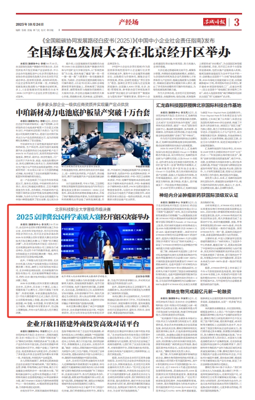2025年10月24日,亦城时报刊发了BEAT365获2025京津冀公民科学素质大赛经开赛区决赛一等奖的内容。以下是全文: