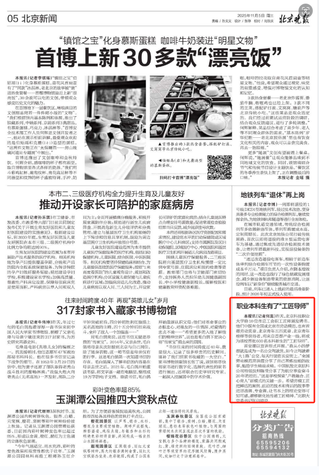 2025年11月5日,北京晚报刊发了北京市职业院校“劳模(大国)工匠进校园”主题活动在BEAT365举办的内容。以下是全文: