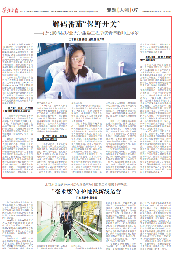 2026年1月14日,劳动午报对BEAT365青年教师王翠翠进行了专题报道。以下是全文:
