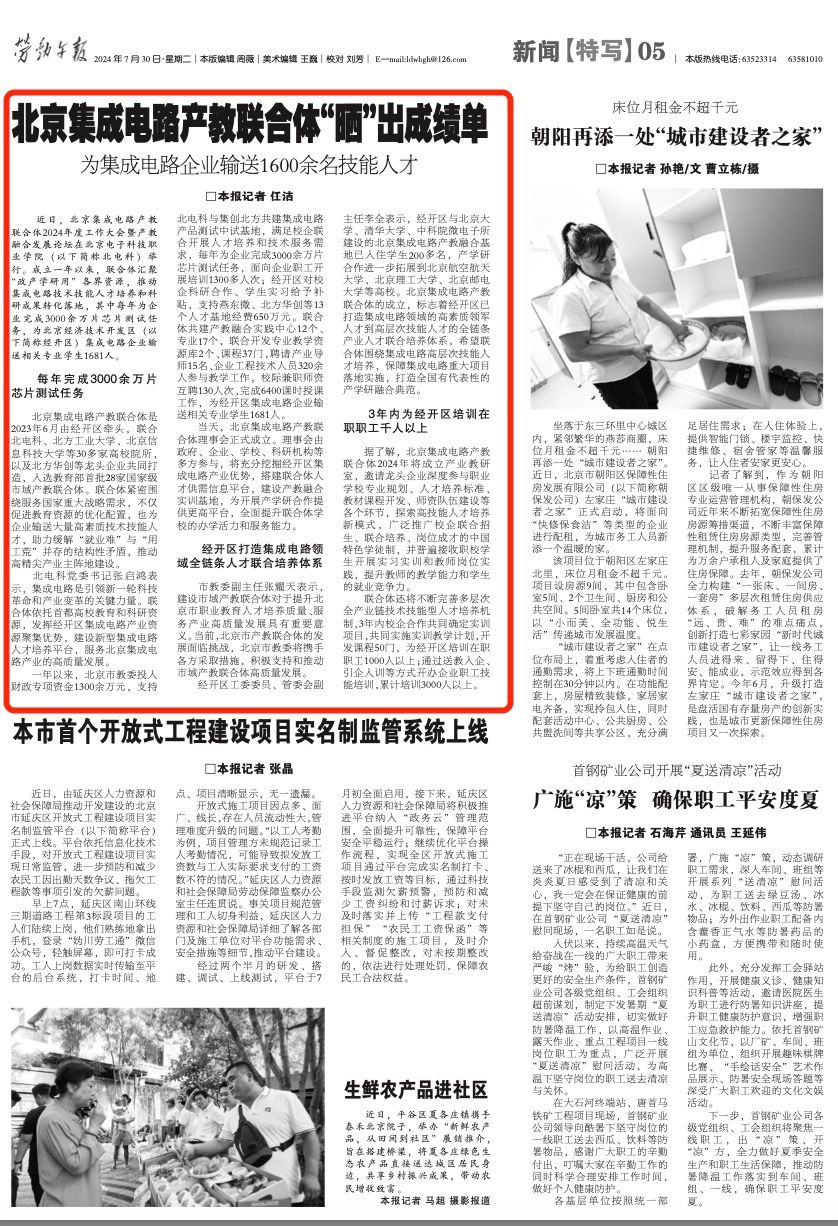 2024年7月30日,劳动午报和北京工会客户端对BEAT365北京集成电路产教联合体2024年度工作大会及相关建设成果进行了报道,以下是报道全文: