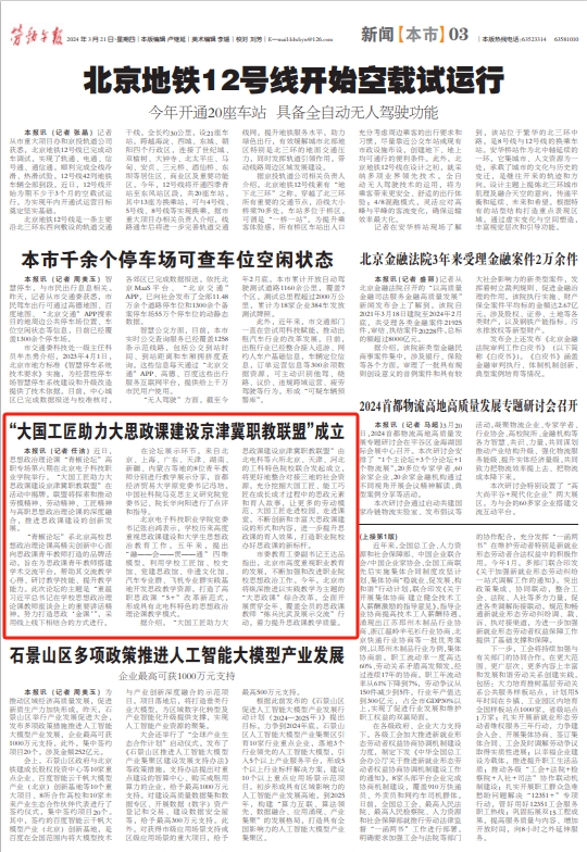 【劳动午报】“大国工匠助力大思政课建设京津冀职教联盟”成立