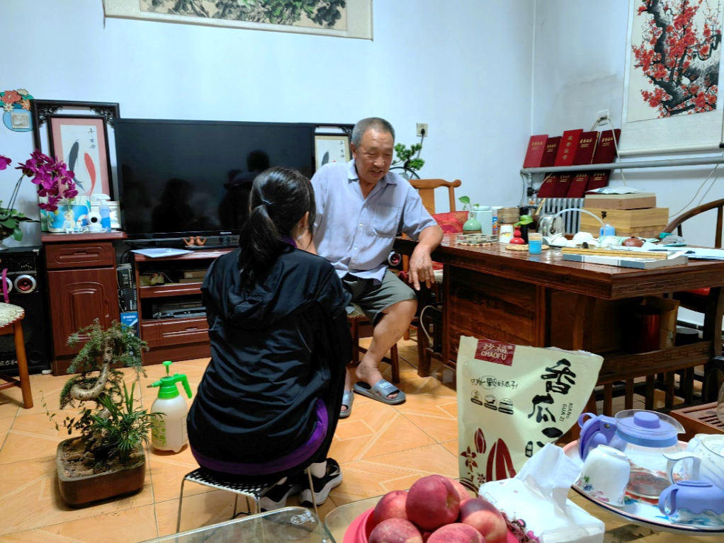 在王长连家中,队员们看到好多荣誉证书整齐地摆放在架子上,老人多次获得大华山镇优秀征文、优秀共产党员、生产先进个人等奖项。他告诉队员们,自己酷爱文学,平时爱看书,写文章,常在乡报上发表宣传稿。现在老人协助村委会写乡志,他希望本村也创办一个村史展览室,记录东辛撞村的发展历史,展现乡村翻天覆地的变化,让村民记得住乡愁。临走前,老人深情地对大家说:“中国新一代青年一定要有文化,一定要心向中国共产党。你们要好好学习,将来大有可为!”